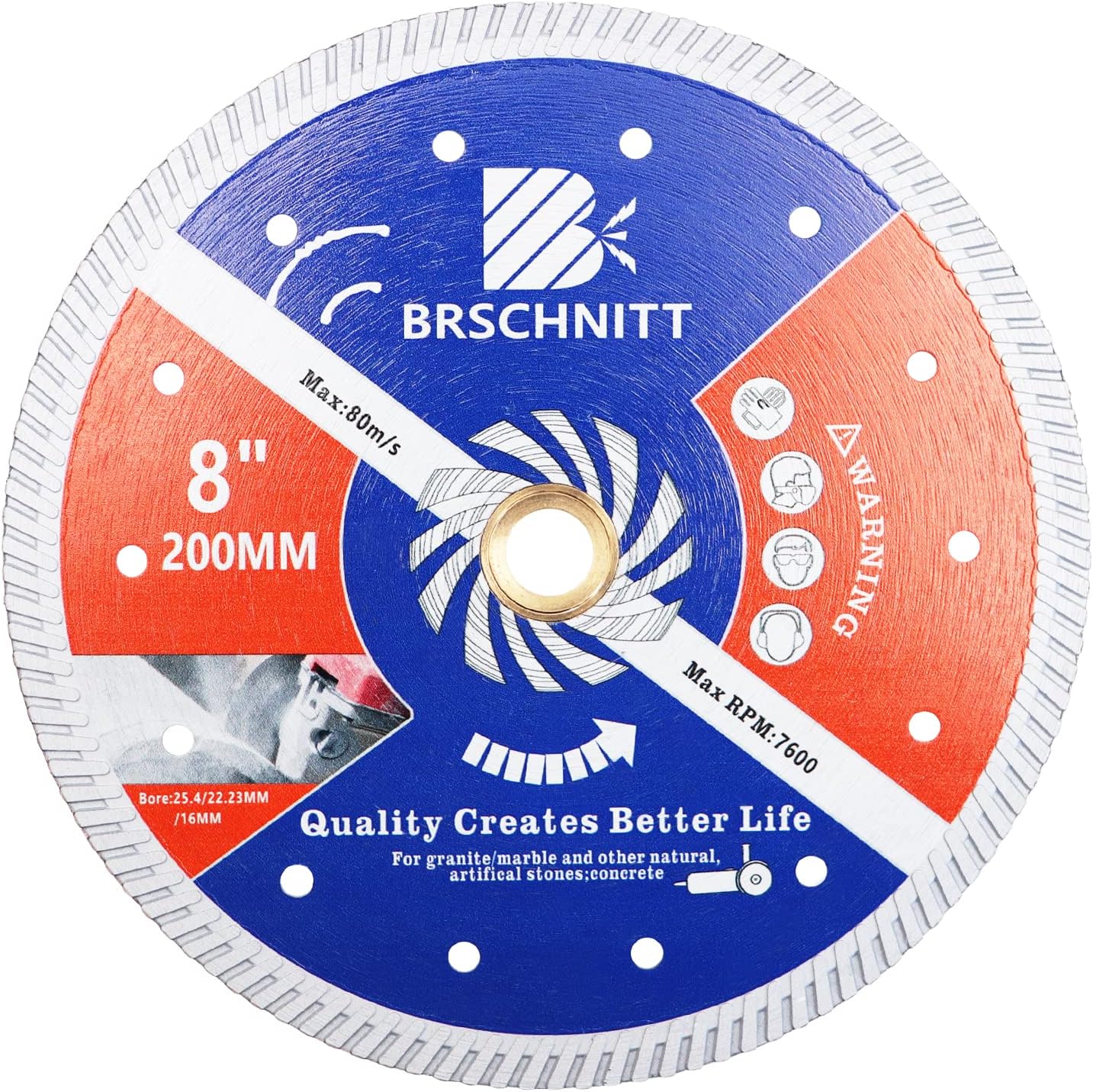 Diamant Trennscheibe - BRSCHNITT 200mm Turbo Diamanttrennscheibe für Beton,Granit Marmorstein Hartbe
