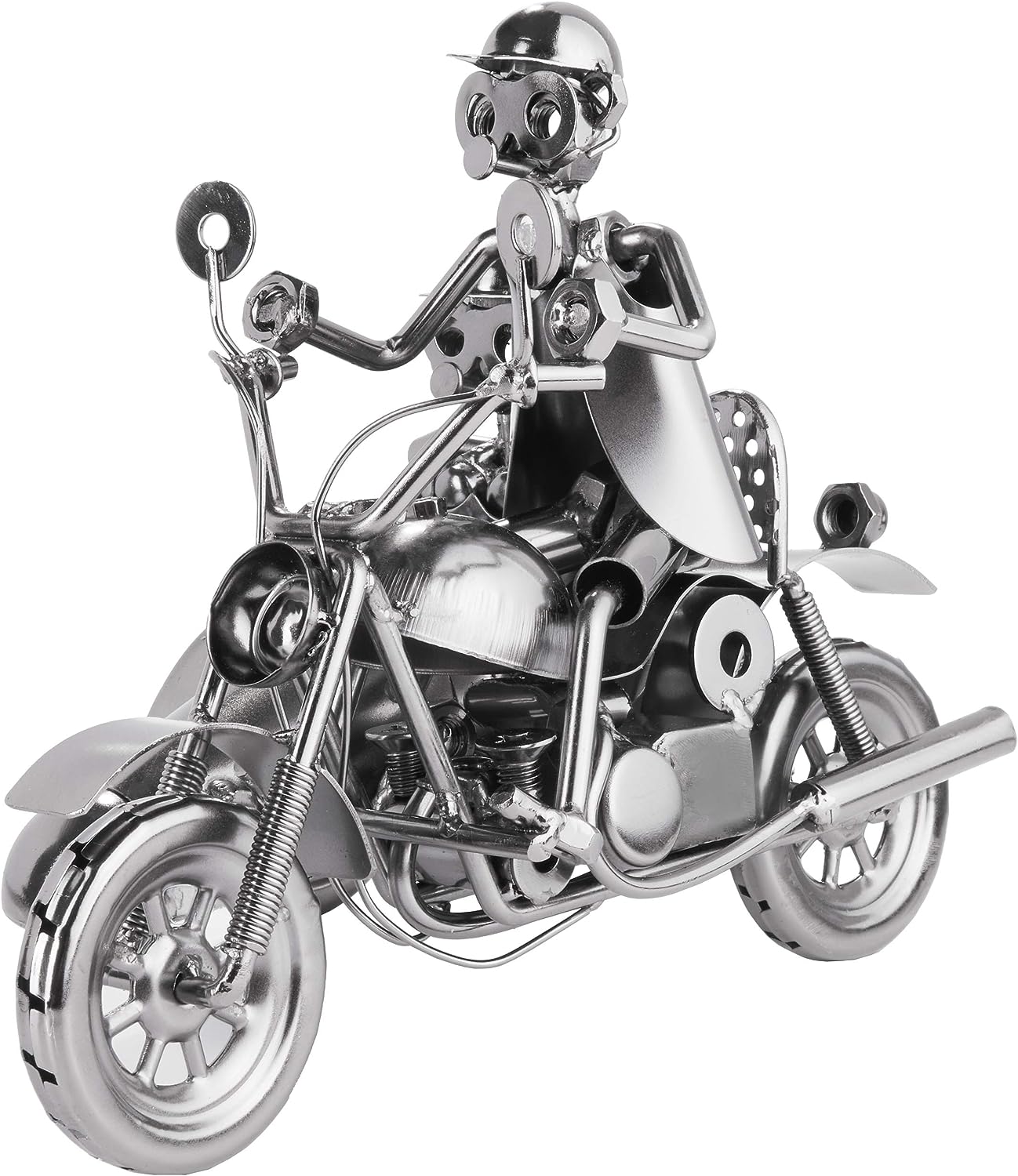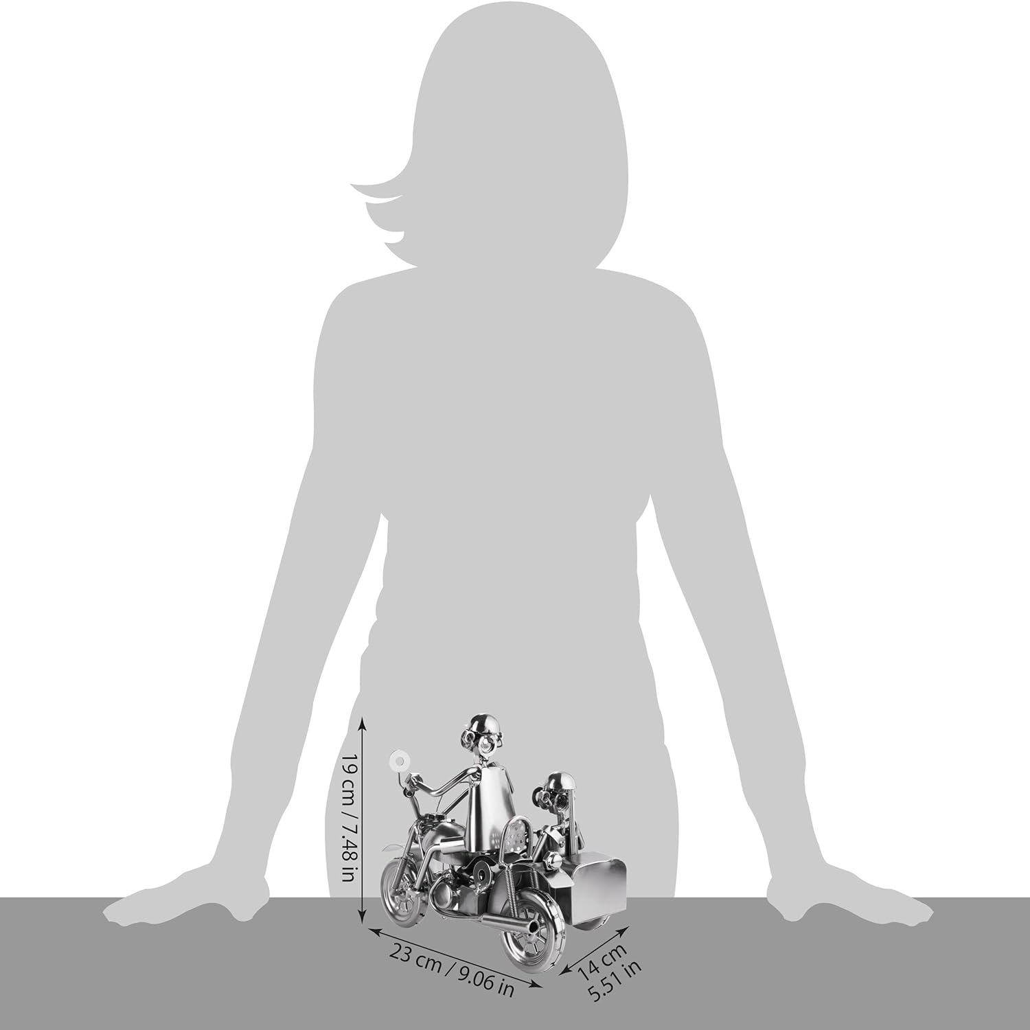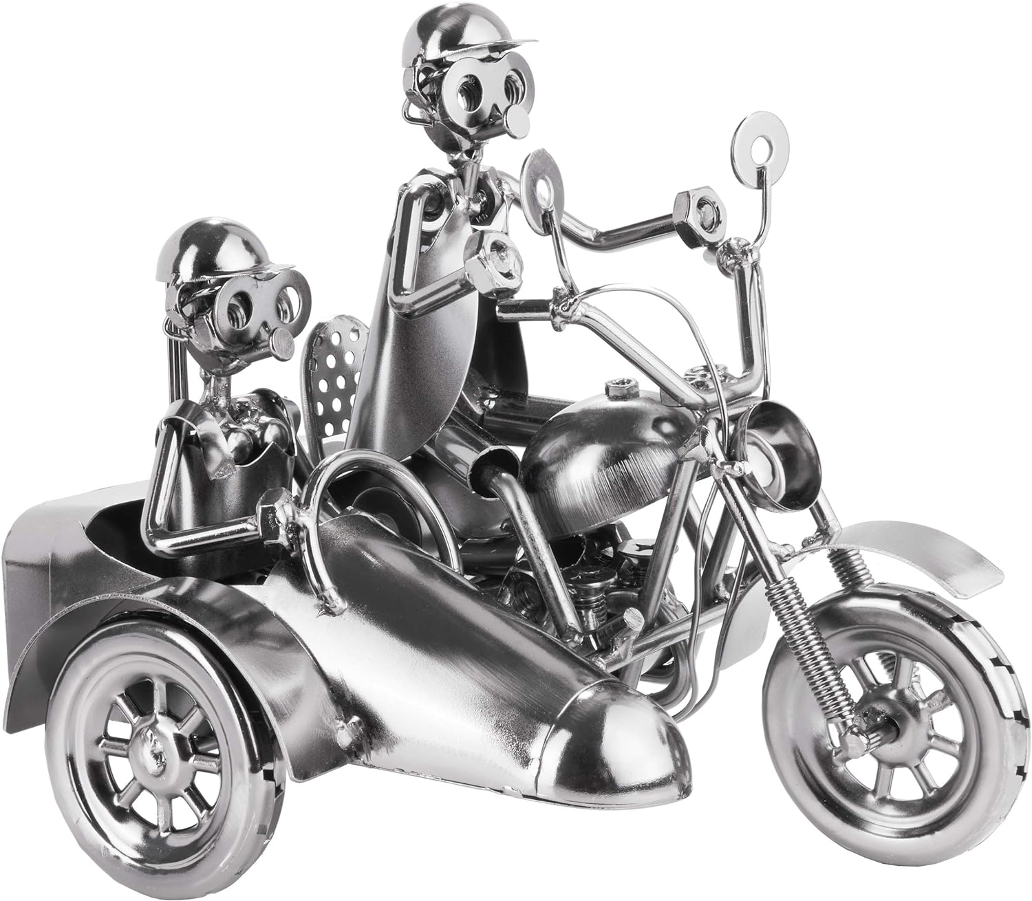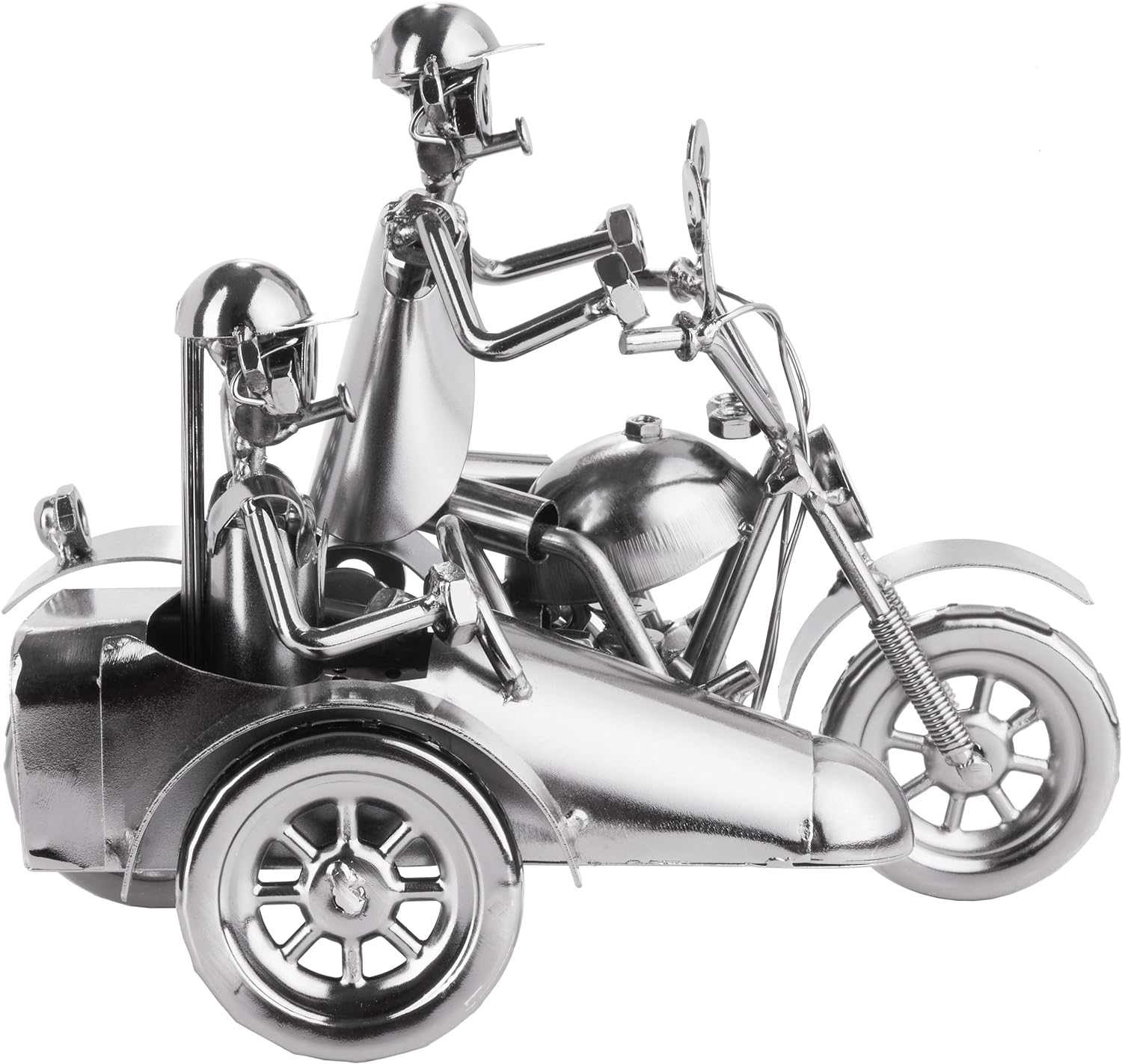 BRUBAKER SchraubenmÀnnchen Motorrad mit Beiwagen - Handarbeit Eisenfigur MetallmÀnnchen - 23 cm Meta