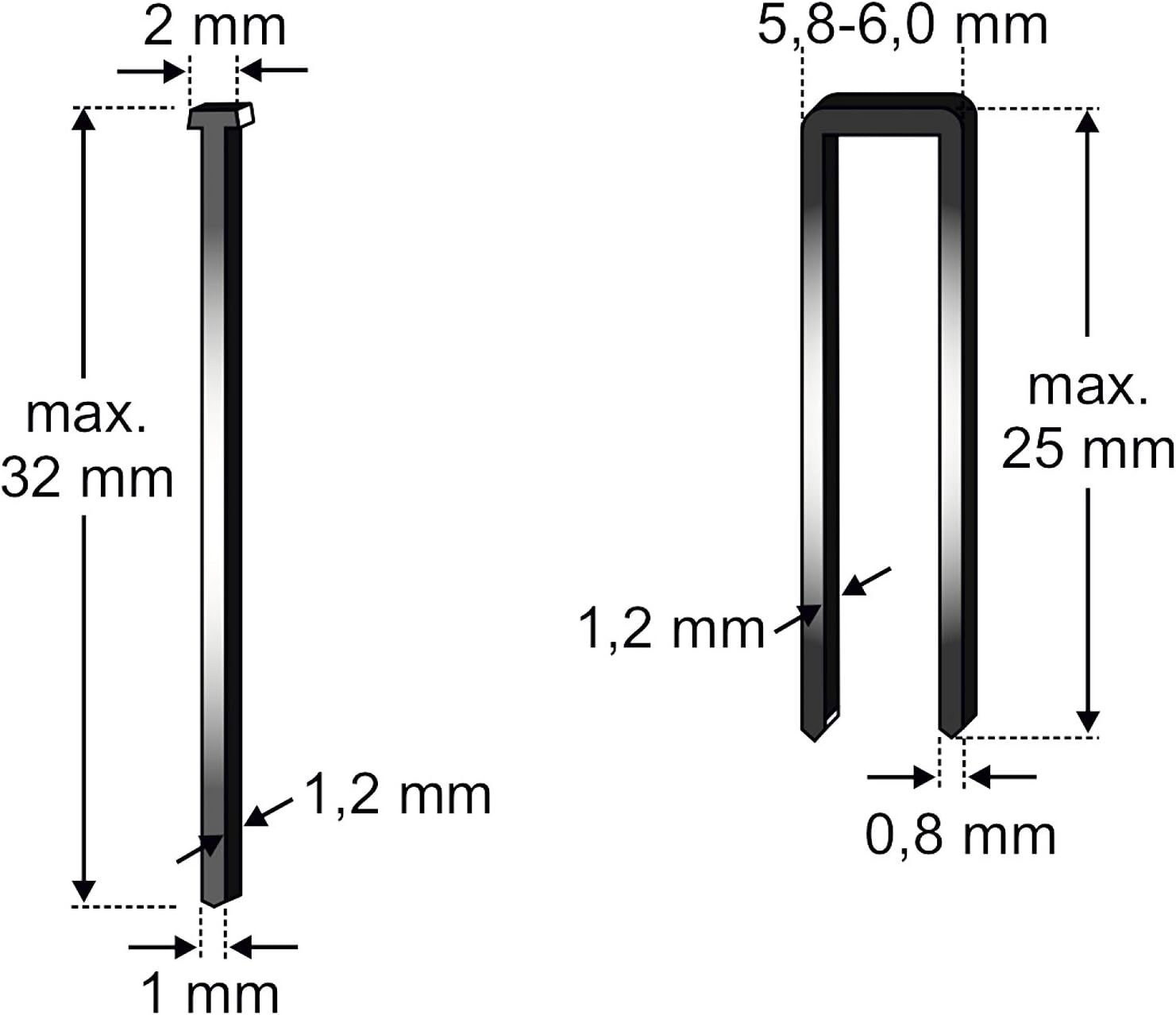 • 100 Klammern und 100 Nägel im Lieferumfang enthalten