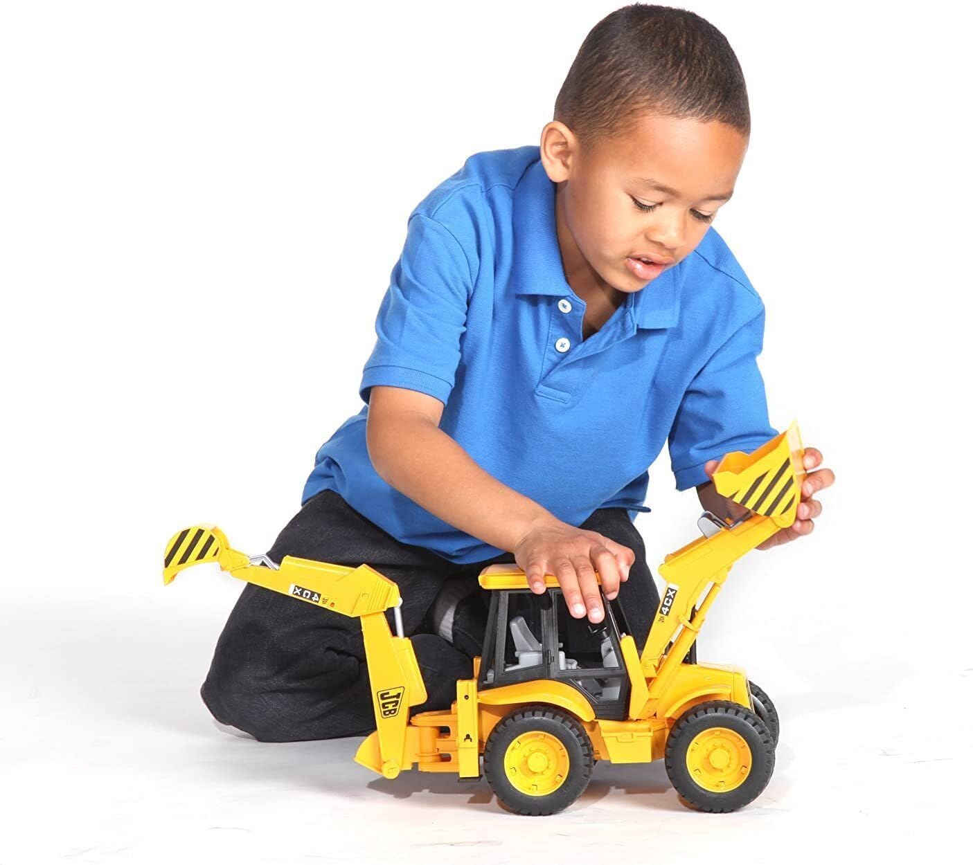 PRODUKTBESCHREIBUNGEN Bruder – Miniatur-Traktorenheber JCB Qualität mit mehreren Funktionen – Ladegerät vorne voll funktionsfähig – Die Retro Schaufel bewegt sich von oben nach unten und wacht von einer Seite zum anderen – Reifen mit echter Lauffläche – Jungen – ab 4 Jahren – Lieferung einzeln.