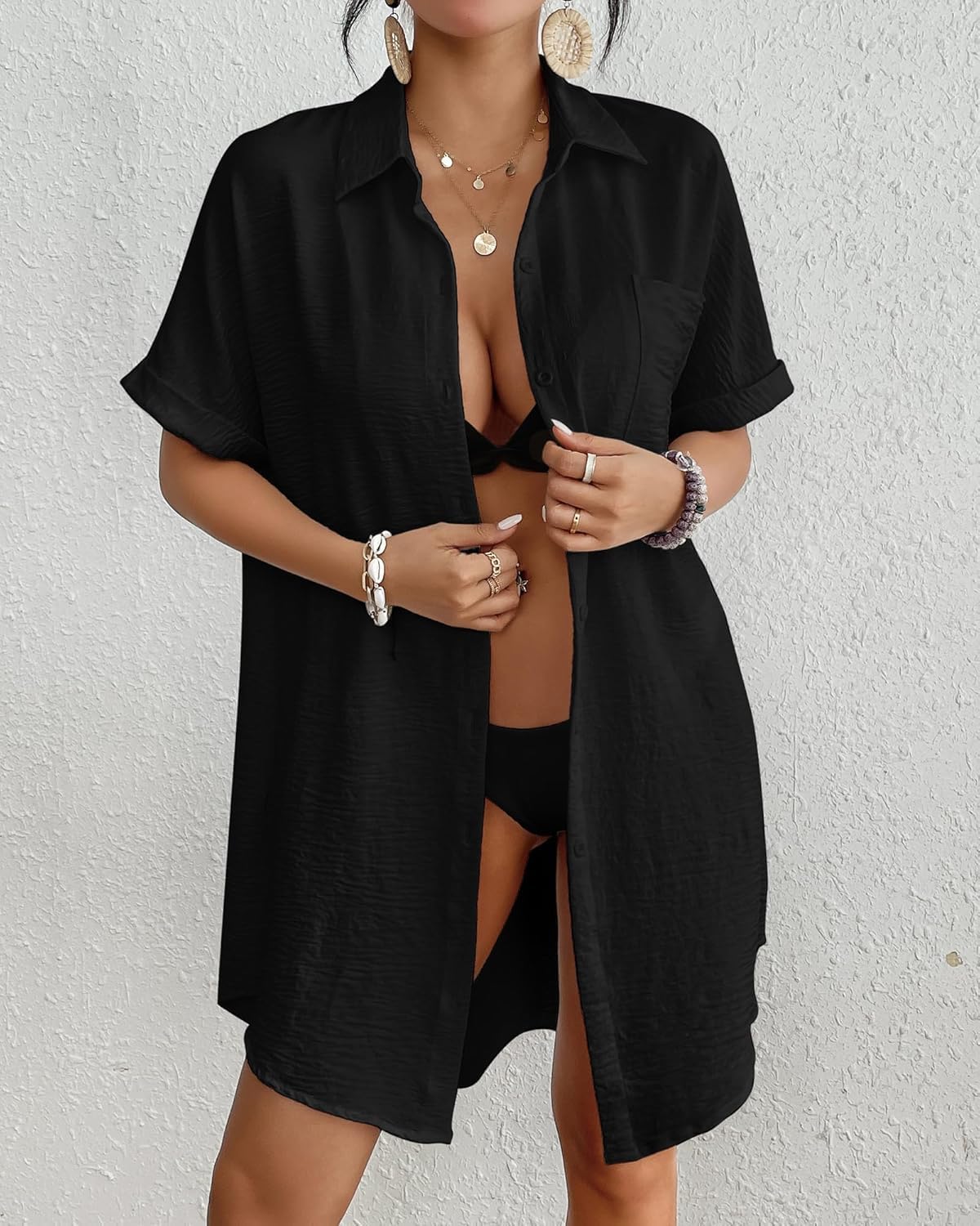 Bsubseach Frauen Badeanzug Coverup Shirt Kleid Button Down Badeanzug Cover Up Beachwear Schwarz S, S
