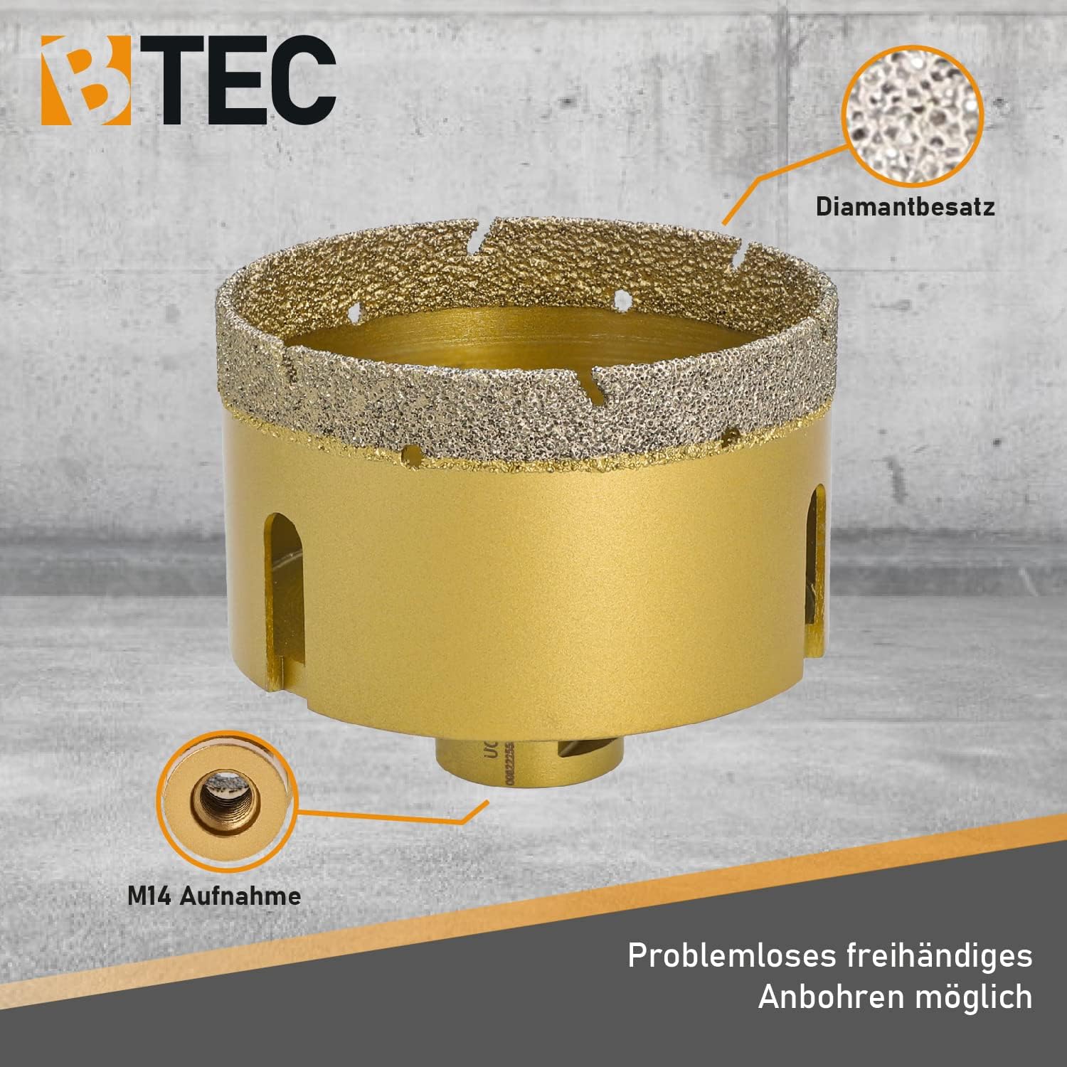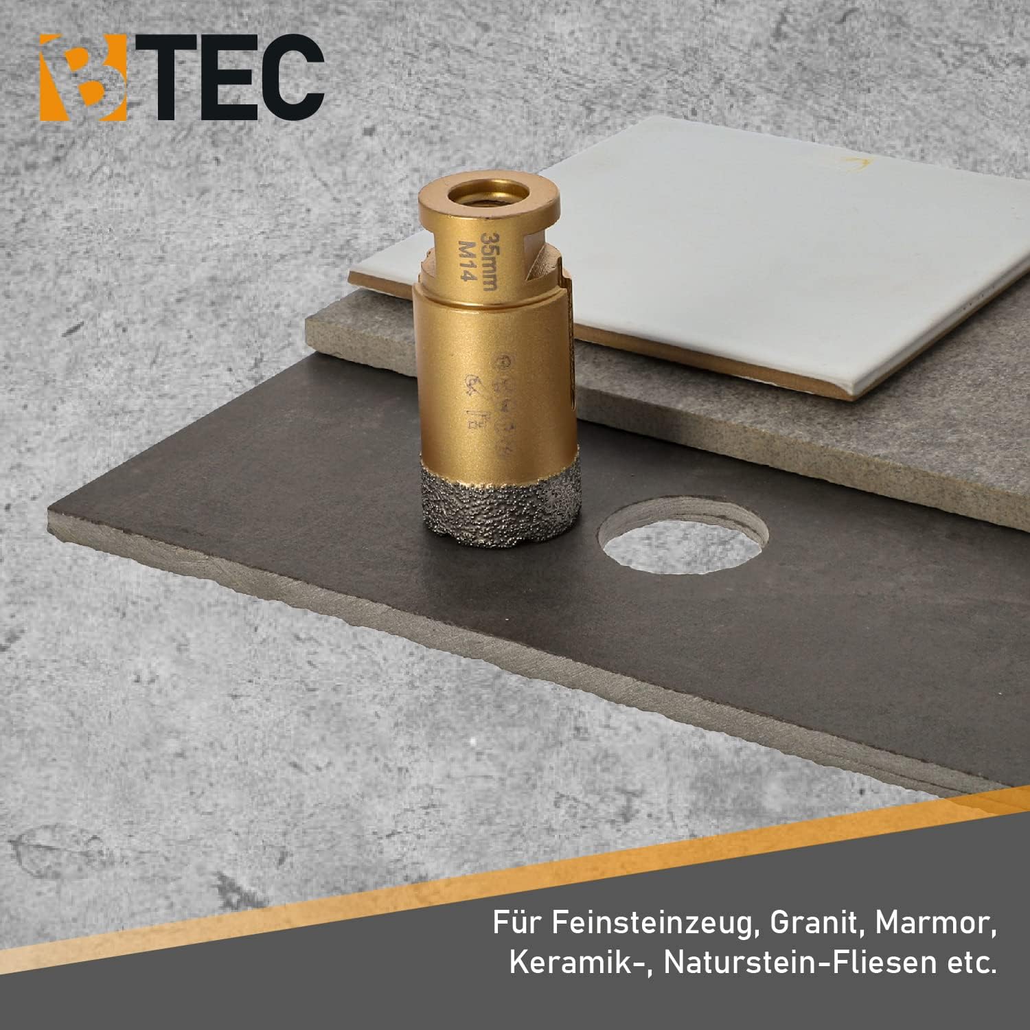 - TECHNISCHE DATEN: BTEC M-14 Fliesenbohrkrone zum Trockenbohren von verschiedensten Materialien, maximale Drehzahl von 11.000 rpm, bohren ohne Anbohrhilfe möglich