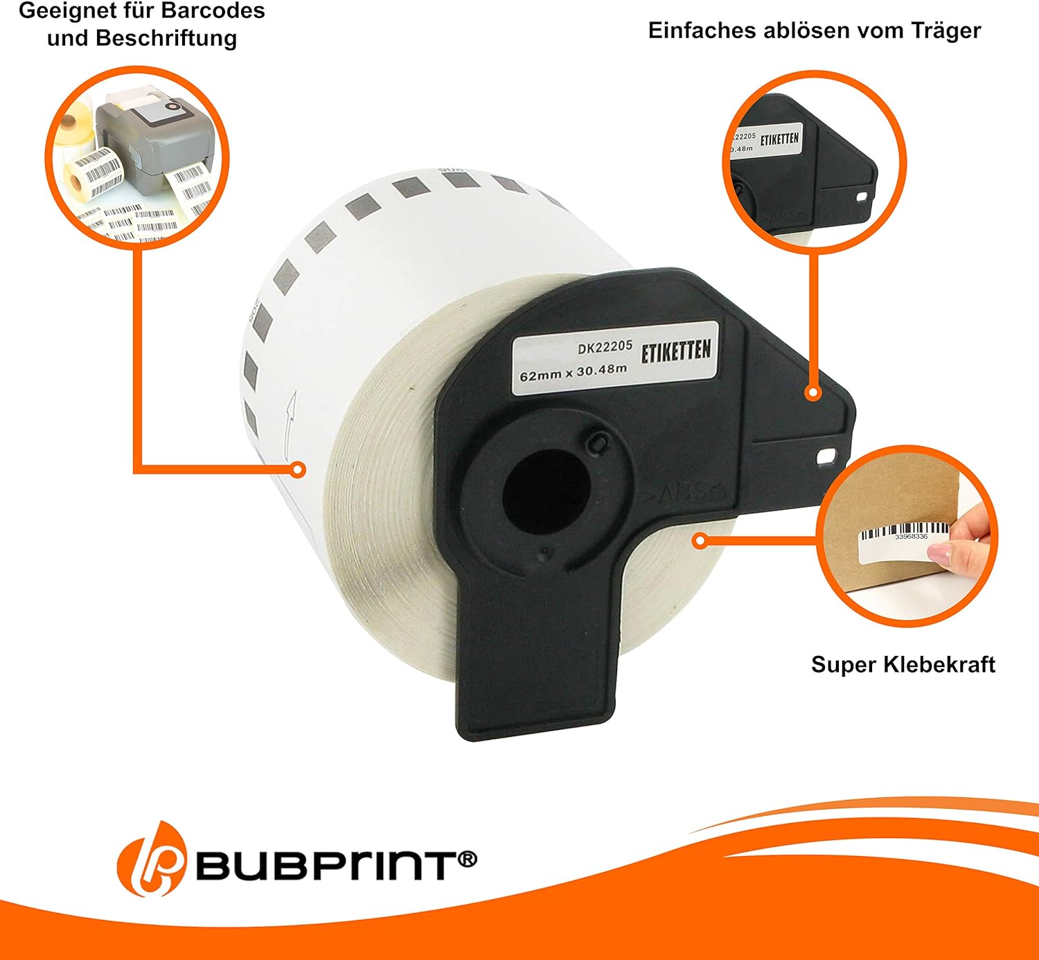 - HANDHABUNG: Einfach die Labels in den Drucker einsetzen und losdrucken - wie bei der Original Etiketten Rolle DK22205 62MM X 30,48M Schwarz auf Weiss, Kompatibel zu Brother QL 500 Etiketten QL820NWB