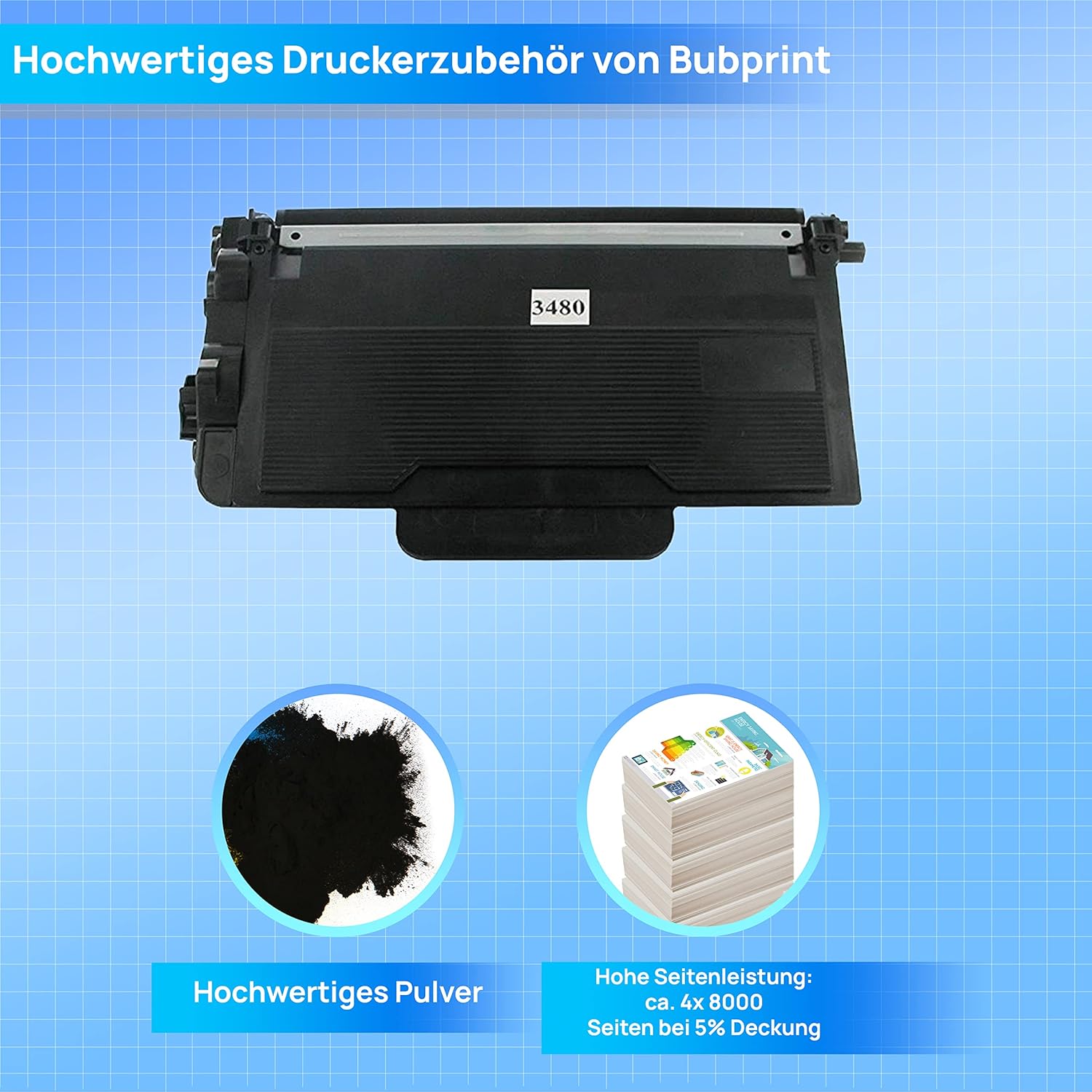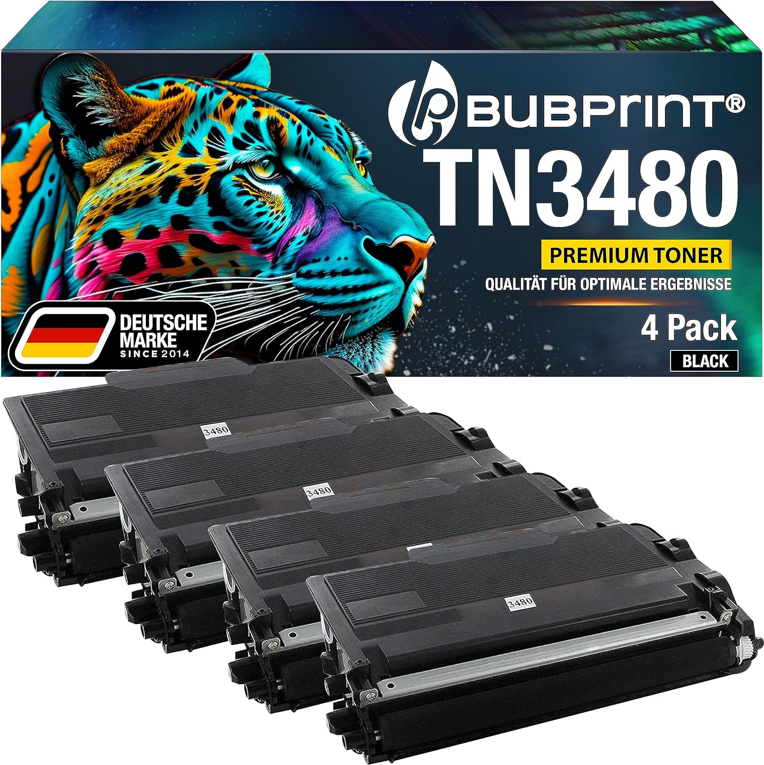 - 4x Tonerkartuschen je 8.000 Seiten, Seitendruckleistung bei 5% Abdeckung A4, kompatibel zu Brother TN-3480 Schwarz, Brother TN 3480, TN3430 // HL-L6400DWT / HL-L6400DWTT / HL-L6450DW / DCP-L6600DW