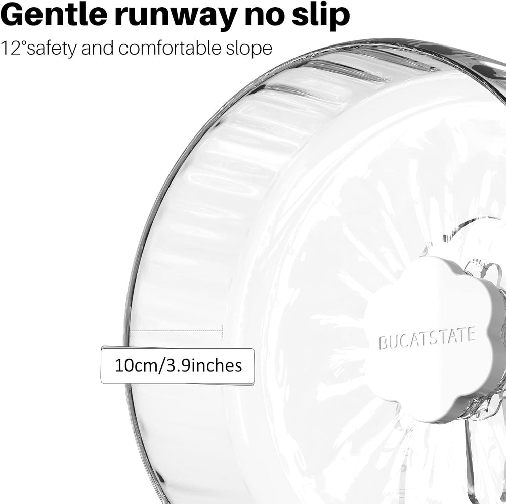 - ✅【LANGLEBIGES MATERIAL】Dieses Hamsterrad hergestellt aus hochwertigem transparentem Acryl, ungiftig und geschmacklos, kann eine lange Lebensdauer haben. Langlebig und unbedenklich für die Gesundheit von Haustieren. Das abgerundete Kanten macht es