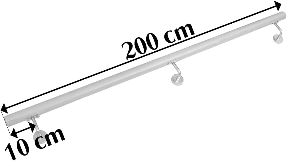 - Lieferumfang: 1x 200 cm Handlauf mit Halterungen und Montagematerial (Handlauf besteht aus 1 Stück)