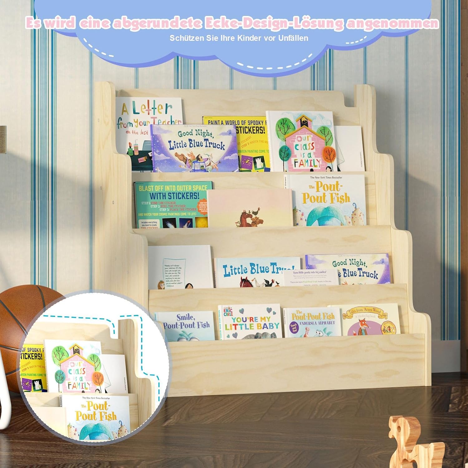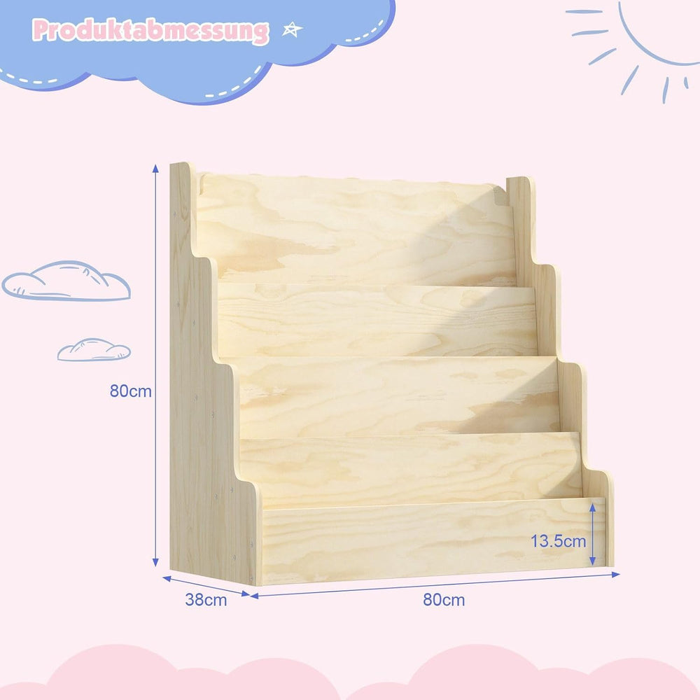 - Keine Sorge für Sicher-Hergestellt aus Pappelholz+Kieferholz, die Kanten und Ecken dieses Bücherregals sind speziell behandelt, damit keine Holzsplitter Ihr Kind verletzen können.