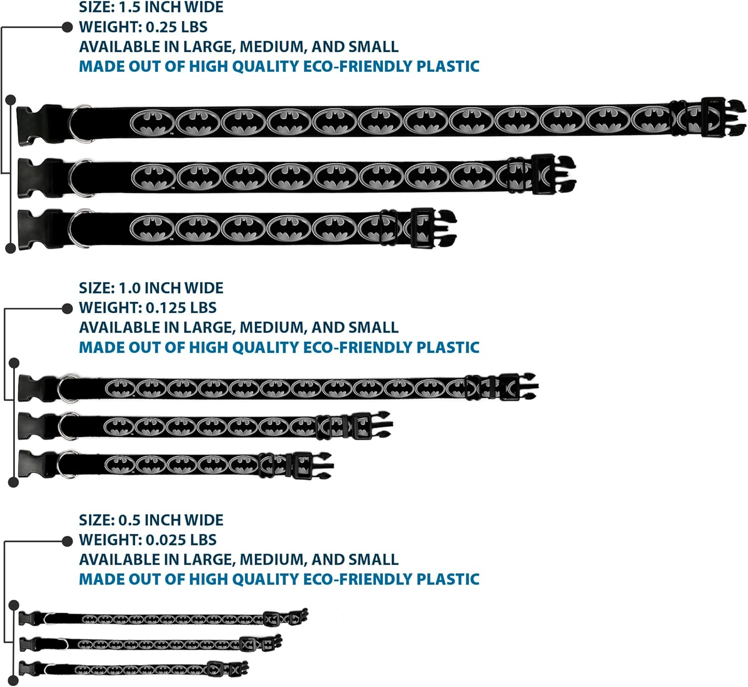 Buckle Down Batman Shield Schwarz/Silber Kunststoff Clip Halsband, NM - Fits 8-12"- 0.5" Wide