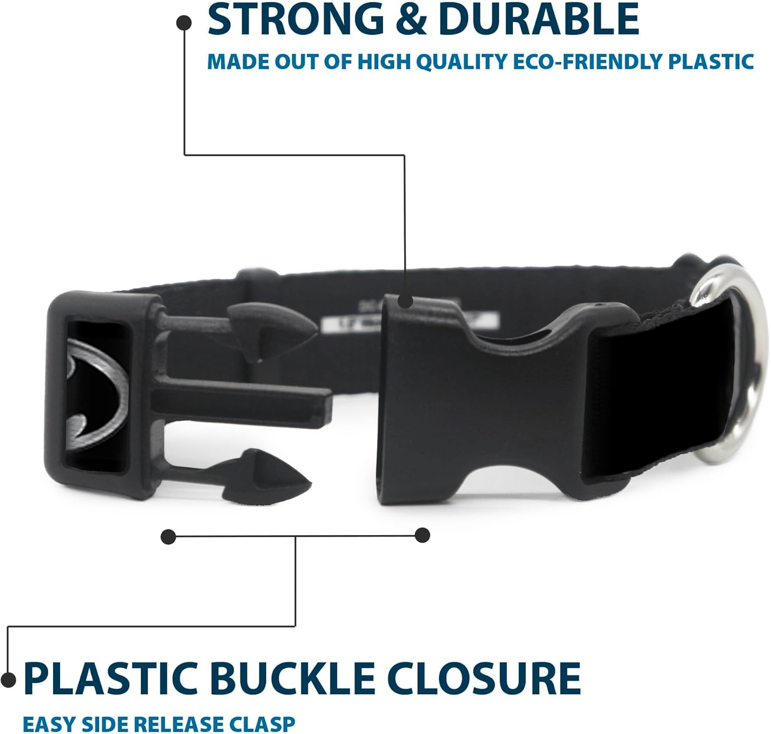 • Das Halsband ist aus hochdichtem Nylon und einem Kunststoff-Clip, der über die Dicke entwickelt wurde, um sicherzustellen, dass es allen Dingen standhält.