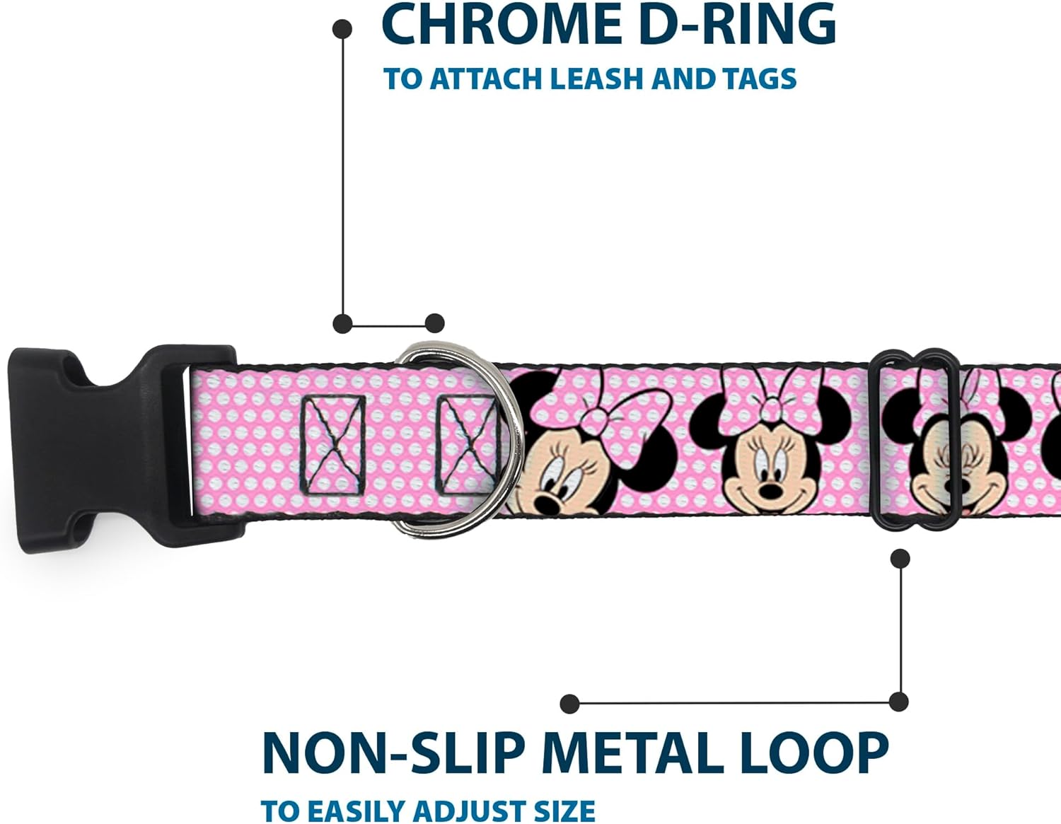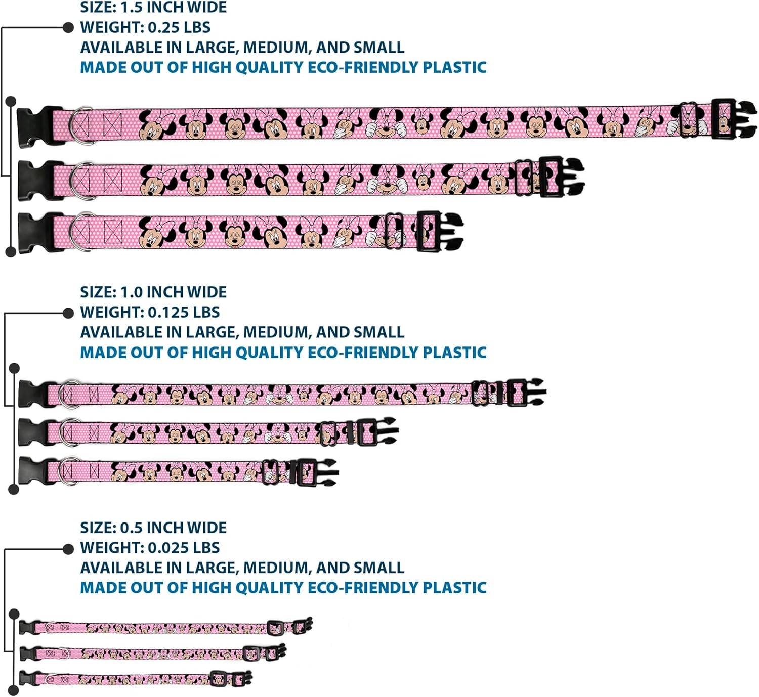 - Buckle-Down Plastic Clip Collar - Minnie Mouse Expressions Polka Dot Pink/White - 1.5" Wide - Fits 13-18" Neck - Small