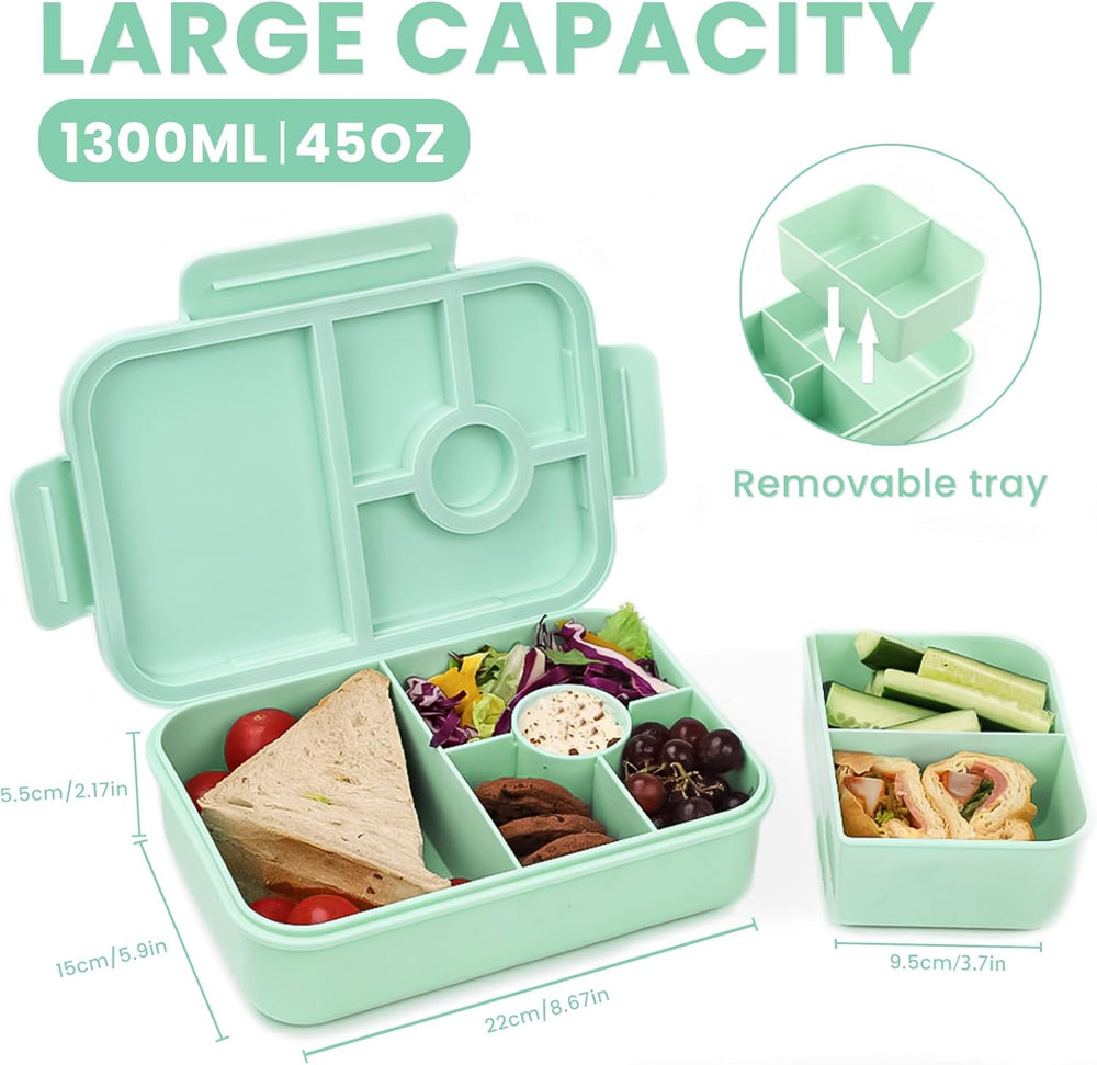 - 【FÜR ALLE ESSGEWOHNHEITEN GEEIGNET】Die Bento Box Kinder besteht aus 5 festen Einzelfächern und 1 herausnehmbaren Kleinbox. Das runde Fach verfügt über einen Deckel, der das Auslaufen von Sosse wirksam verhindert. Das grosse Fach bietet Platz für
