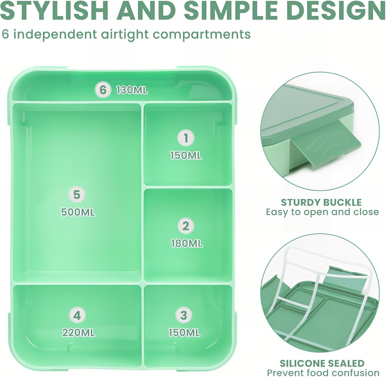 - 【AUSLAUFSICHERES DESIGN】 Die Schale von Brotdose besteht aus 6 festen Fächern, und die Innenseite des Deckels ist mit einem Silikonring versiegelt, der jedes Fach perfekt umschliesst, wodurch das Auslaufen von Lebensmitteln wirksam verhindert, ein