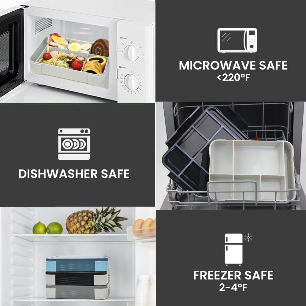 - 【EINFACH ZU TRAGEN UND ZU REINIGEN】 Die Frühstücksbox ist klein und leicht und passt in die meisten Rucksäcke.Auch wenn jedes Fach mit leckerem Essen gefüllt ist, liegt sie nicht schwer in der Hand, was sehr gut für Kinder geeignet ist. Die