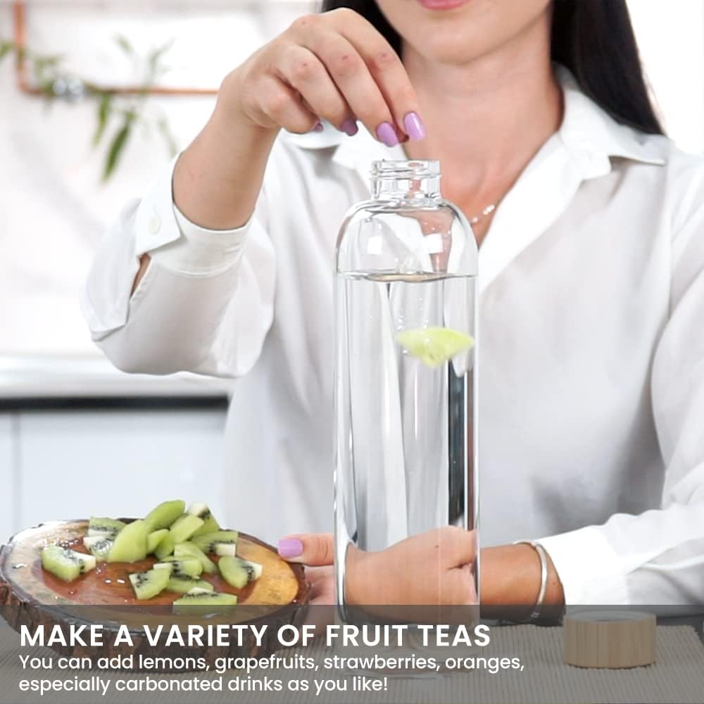 - 【AUSLAUFSICHER UND LUFTDICHT】 Flaschenmündung mit Bambusverschluss mit lebensmittelechtem Edelstahl-O-Ring und spiralförmiger Strukturschnittstelle, egal wie Sie die Trinkflasche aus Glas platzieren, sie wird nicht auslaufen und bleibt luftdicht,