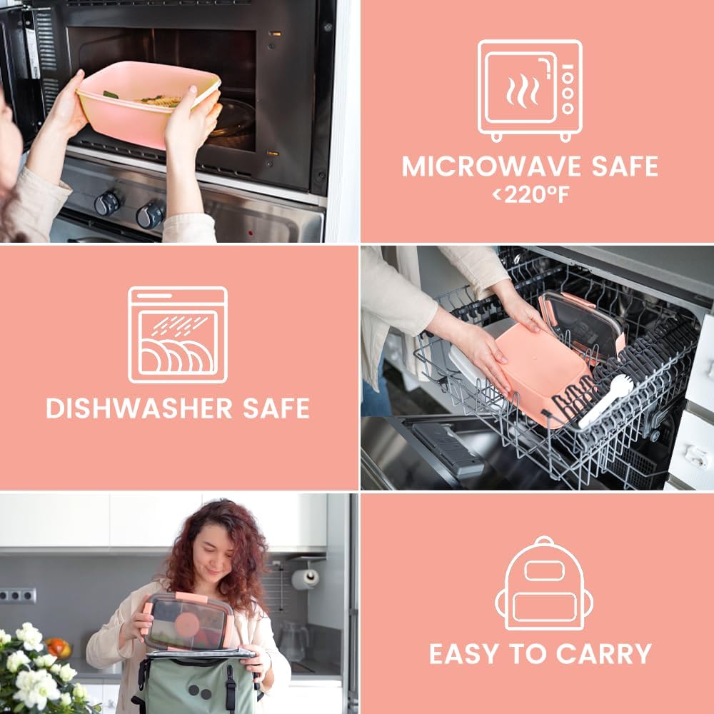 - 【LEBENSMITTELSICHERE MATERIALIEN】 Die Bugucat Lunchbox für Erwachsene besteht aus gesunden und sicheren Materialien und enthält kein BPA. Sicher und langlebig. Mihilfe der Lunchbox mit Fächern können Lebensmittel sicher in der Mikrowelle erwärmt