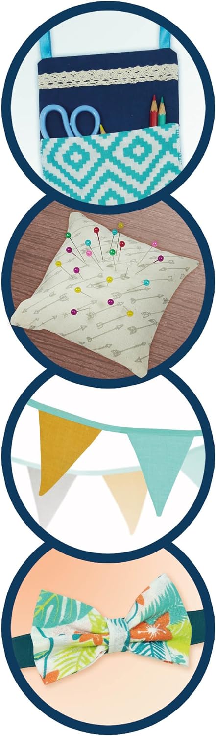 - Lerne 4 trendige Projekte zu nähen: Wimpelgirlande, besticktes Kissen, Fliege und Wandtasche!