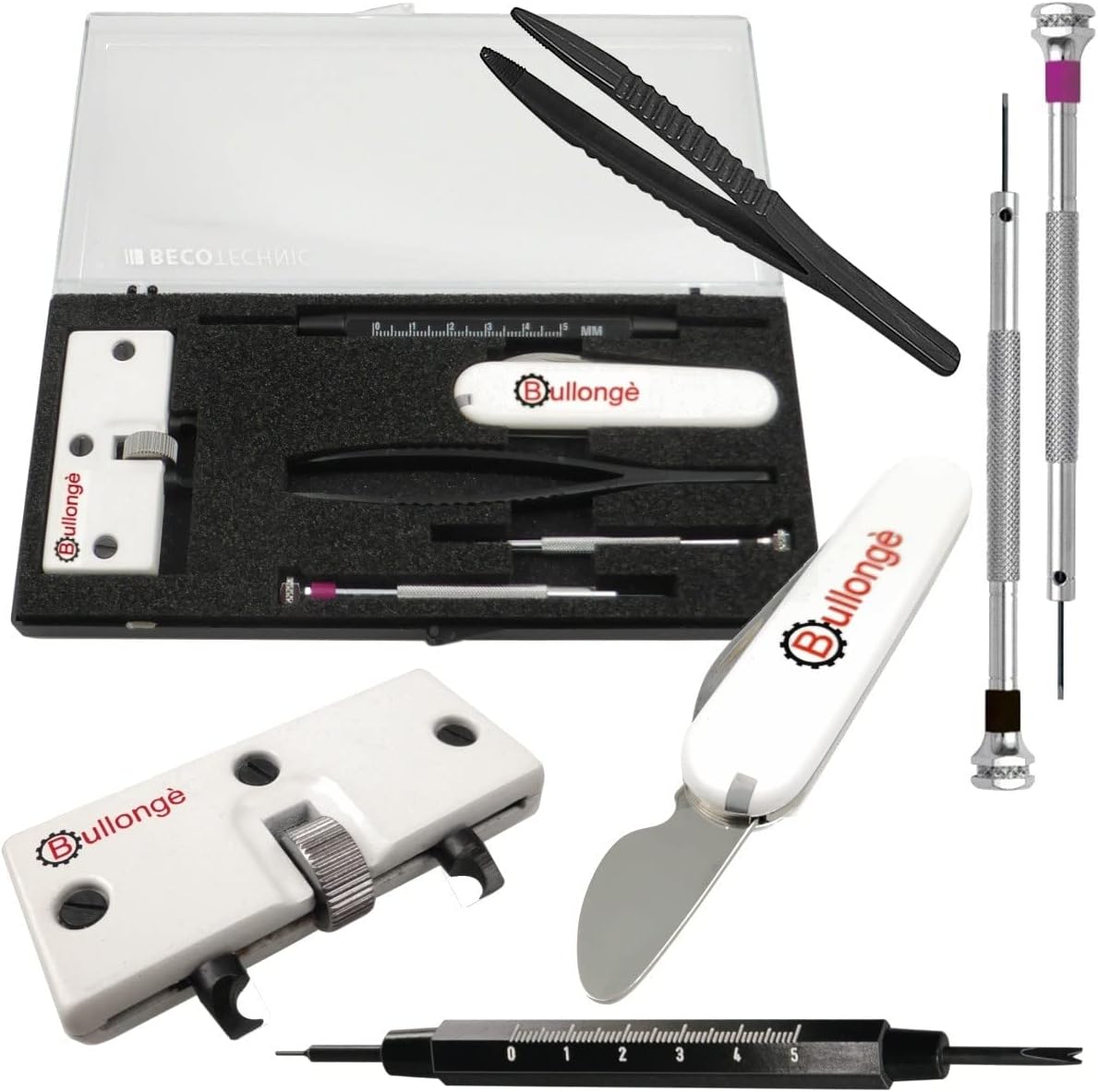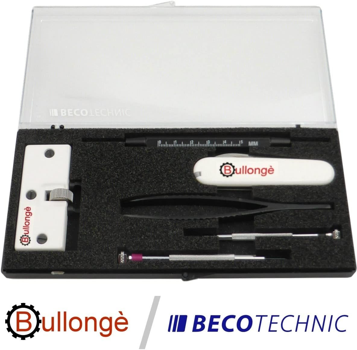 PRODUKTBESCHREIBUNGEN Das Uhrmacher-SET BECO TECHNIC MEDIUM STAR bietet für Hobby-Uhrmacher den folgenden Inhalt: Gehäuseöffner BULLONGÈ für Schraubböden, Gehäusemesser MASTER für Pressböden (Victorinox, swiss made mit Pinzette und Ölgeber), Kunststoffpinzette für den Batteriewechsel, Uhrmacher-Schraubendreher 1.0 und 1.6mm, Federstegwerkzeug, Kunststoffbox. Mehr