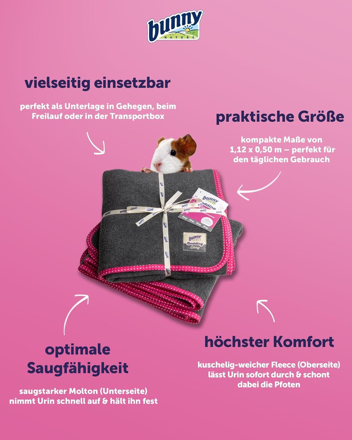 - KOMFORT FÜR HAUSTIERE: Das bunnyBedding Easy bietet flauschig-weichen Fleece, der sofort Urin durchlässt und schont die Pfoten deiner Meerschweinchen. Ideal für trockene und sichere Pfoten.