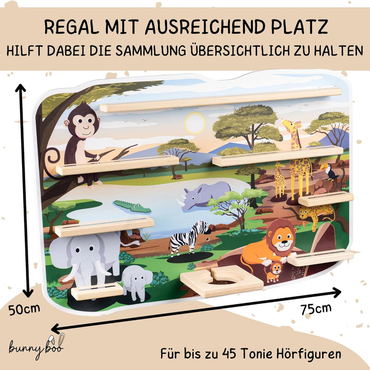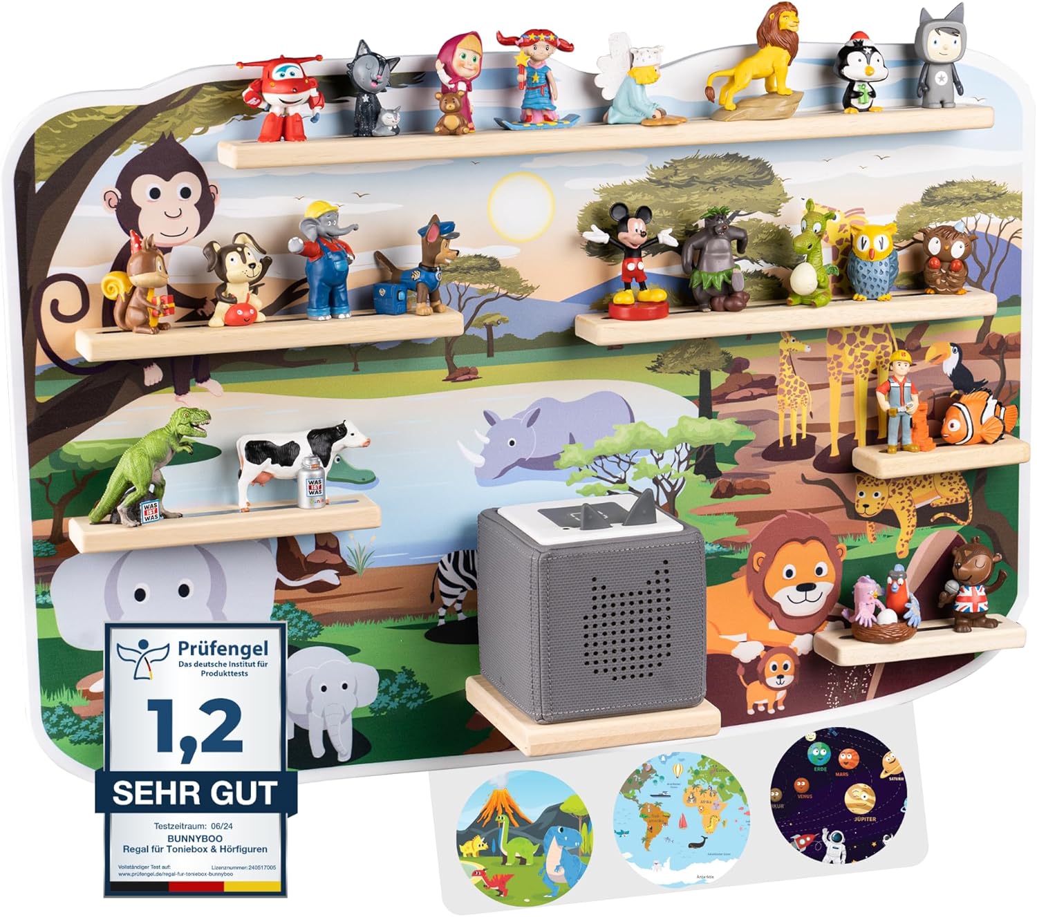 - 🐘 IDEALE AUFBEWAHRUNG Das Tonie Regal von bunnyboo bietet ausreichend Platz für bis zu 45 Tonies Hörfiguren, Toniebox und Ladestation. Gehört in jedes Toniebox Starterset!