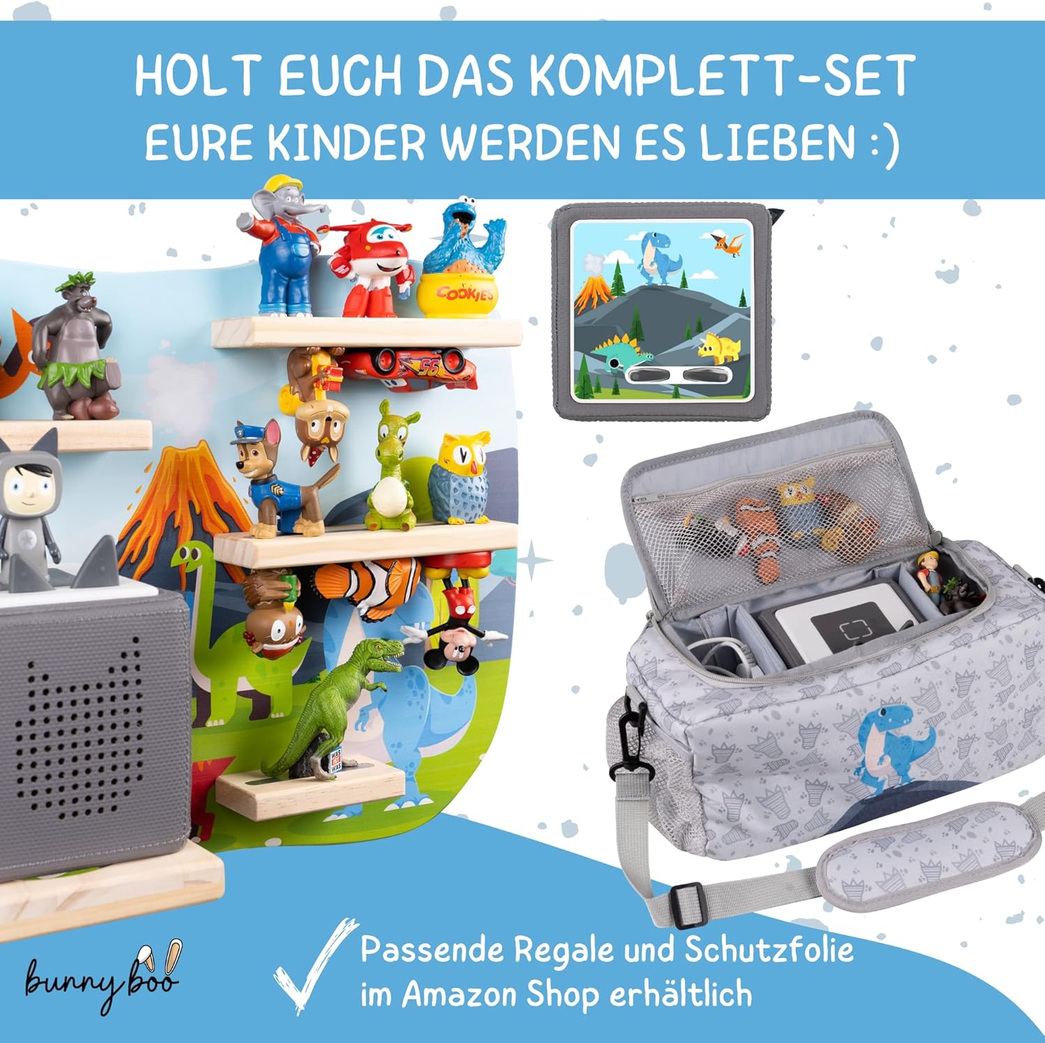 - 𝐏𝐄𝐑𝐅𝐄𝐊𝐓𝐄 𝐄𝐑𝐆Ä𝐍𝐙𝐔𝐍𝐆: Die bunnyboo Taschen passt ideal zu unserem Tonie Regal und weiterem Toniebox Zubehör. Das Toniebox Regal kann direkt über Amazon erworben werden. Sicher Euch das komplette Set