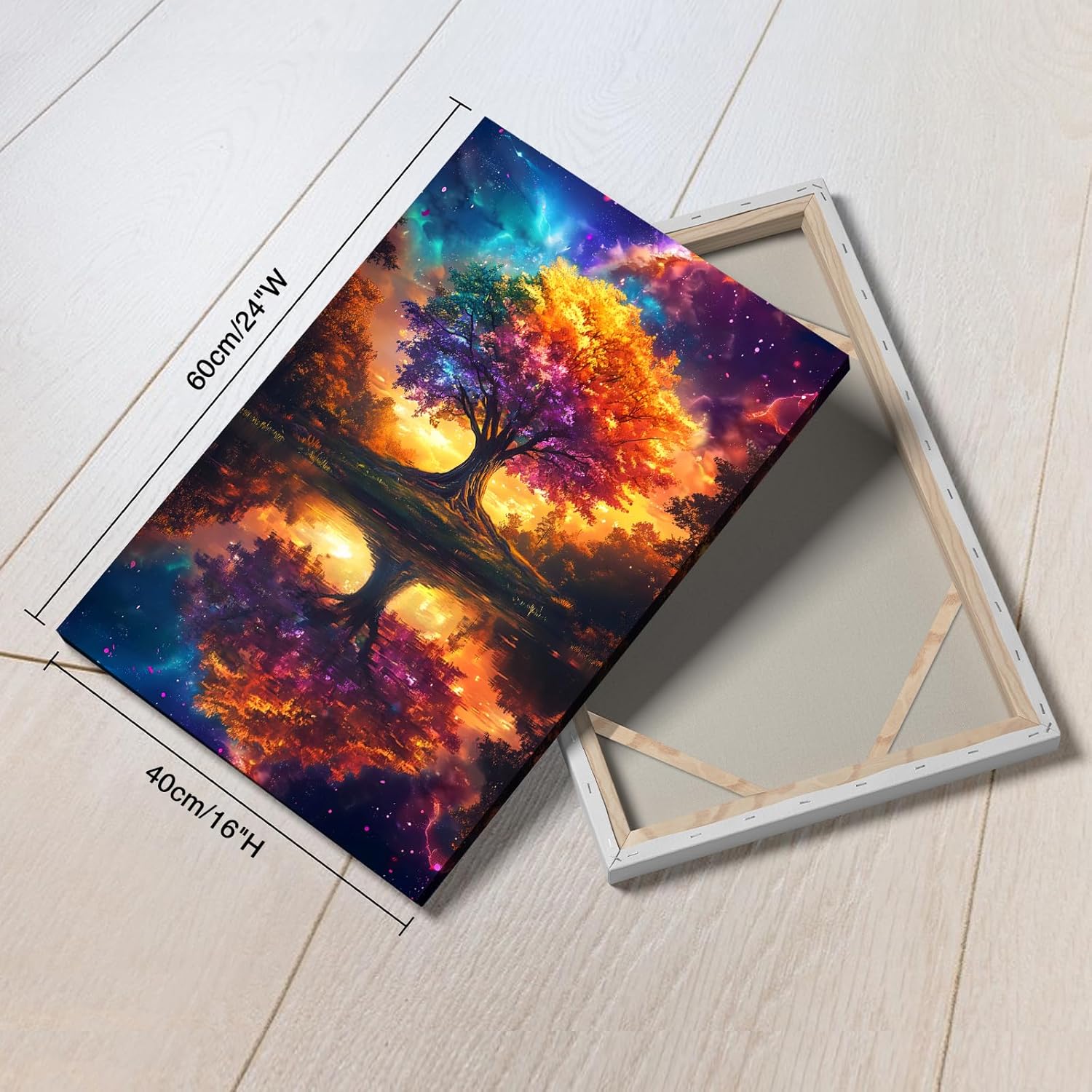 - 【Rahmen Wandbilder Modern 】 Paket kommt mit 1 panel bunte baum spiegelungen mit rahmen leinwand wandbilder, 1 panel 16" x 24" (40 x 60cm).