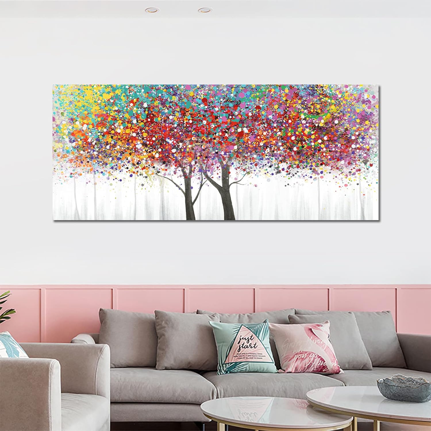 Bunter Baum des Lebens Mit Rahmen Leinwand Bilder Landschaft Leinwand Malerei Gemälde Poster Foto Bi