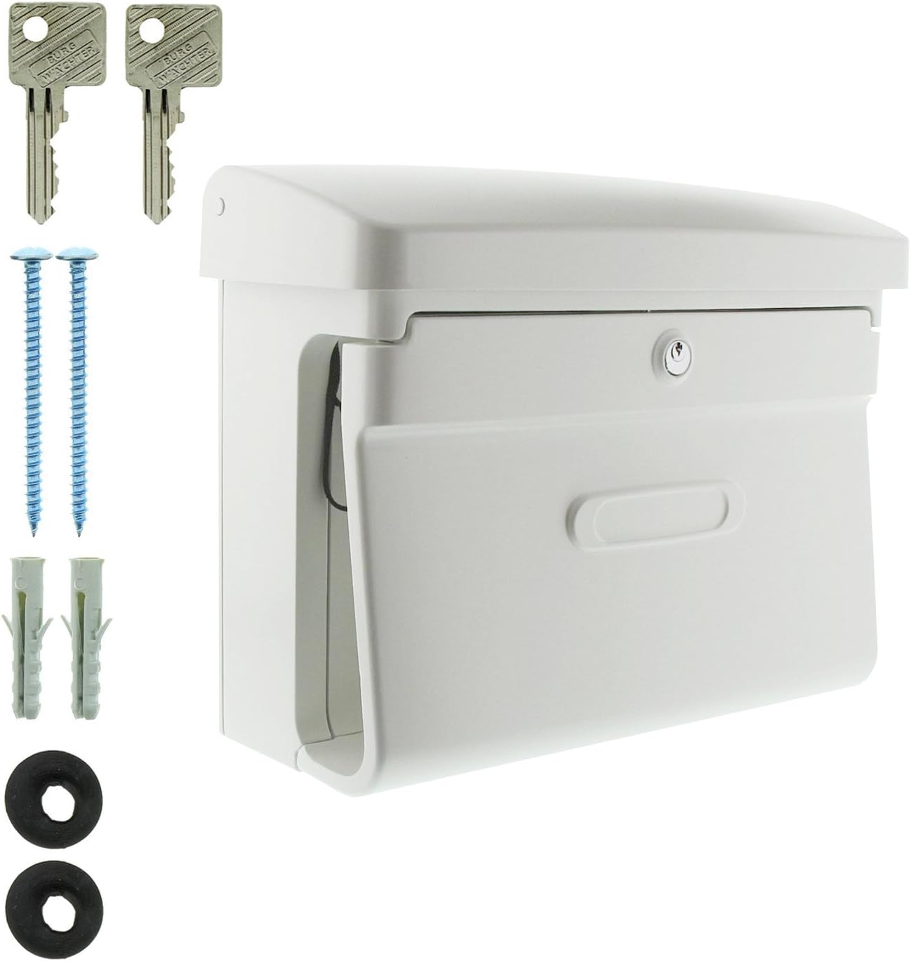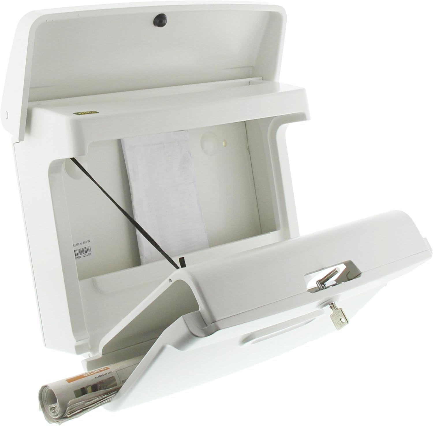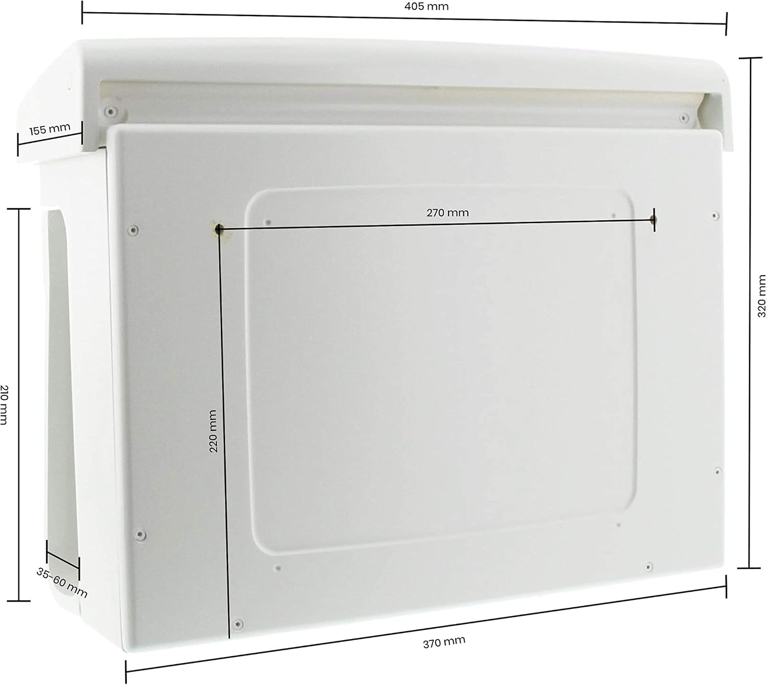 - LIEFERUMFANG & ABMESSUNGEN: 1 BURG-WÄCHTER Postkasten, Bremen 885 W, 2 Schlüssel, Abstandshalter und Befestigungsmaterial, Masse inkl. Deckel (HxBxT): 320 x 405 x 155 mm, Einwurf (BxH): 330 x 30 mm, Material: Kunststoff, Farbe: Weiss (ähnich RAL