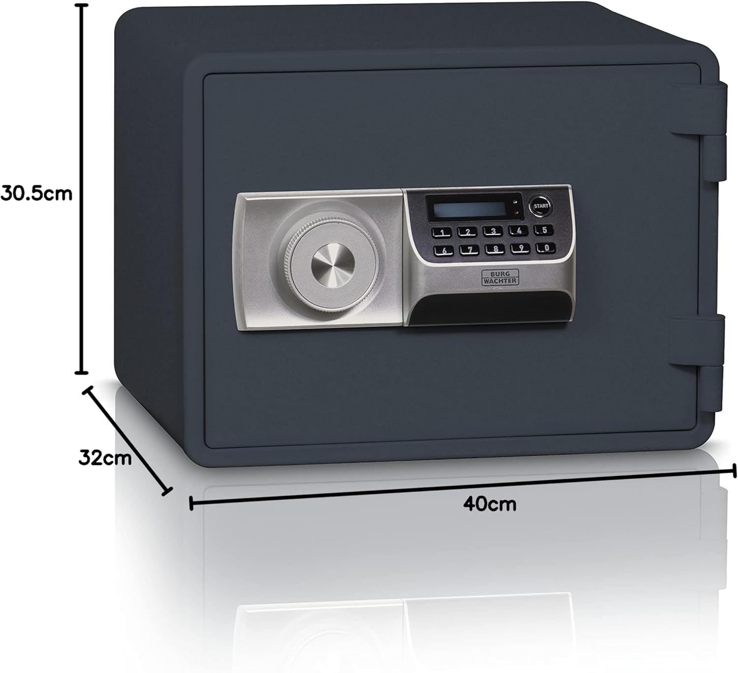 - LIEFERUMFANG & ABMESSUNGEN: 1 BURG-WÄCHTER Feuerschutztresor mit Schublade, FP 44 E, Befestigungsmaterial, 4 Batterien (AA), Aussenmasse (LxBxH): 32 x 40 x 30,5 cm, Material: Stahl, Farbe: Anthrazit, Volumen: 14,3 l, Gewicht: 25 kg