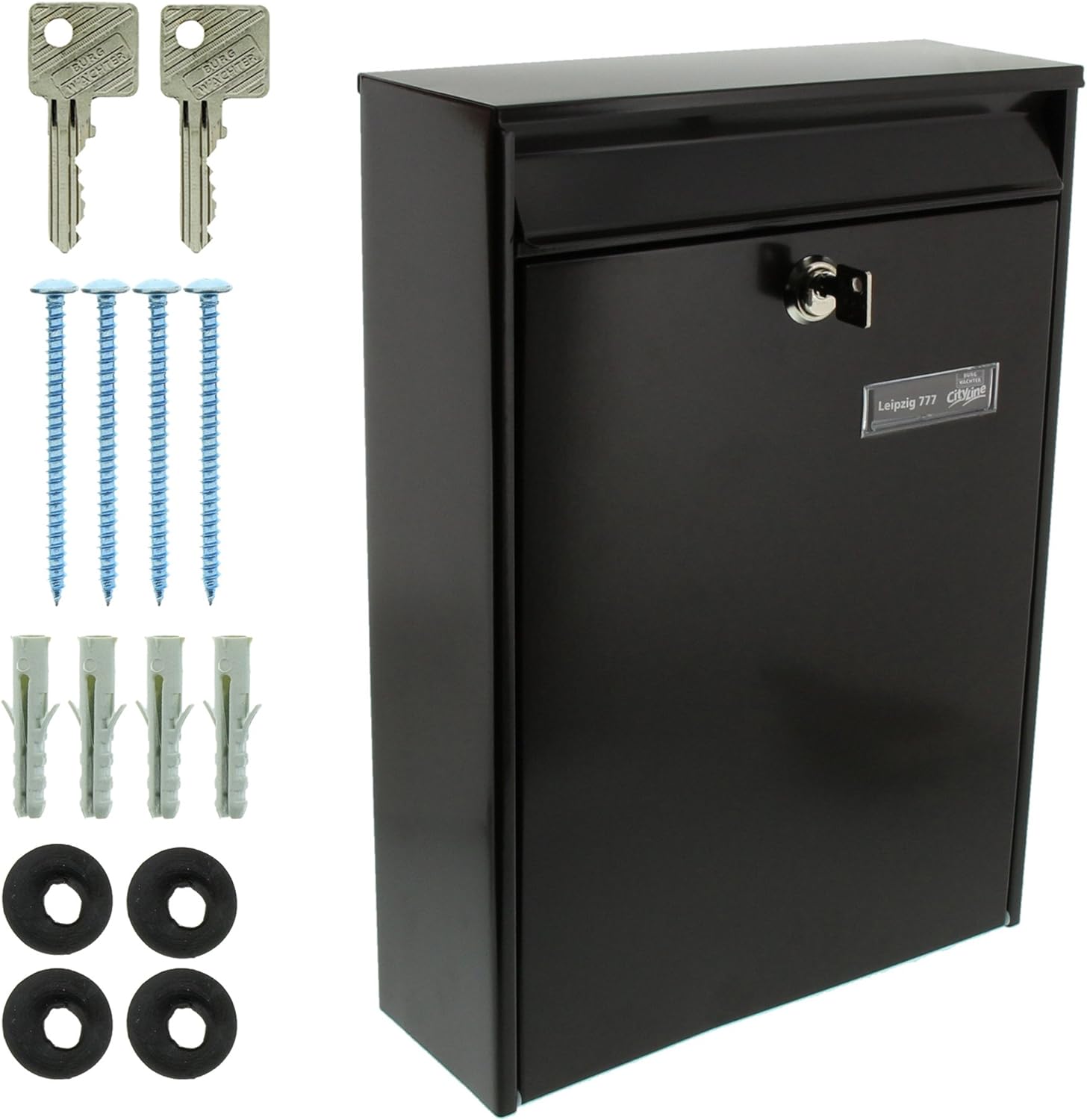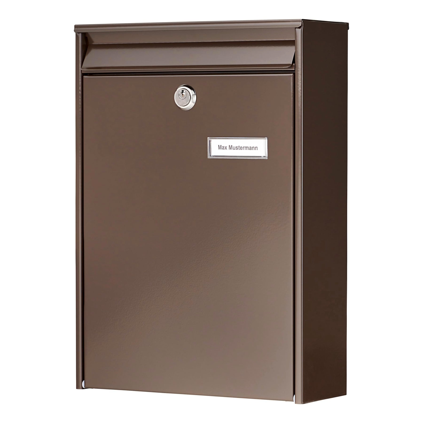 - Lieferumfang: 1 BURG-WÄCHTER Stahlbriefkasten, Leipzig 777 BR, 28910, Inkl. 2 Schlüsseln, Abstandshalter und Befestigungsmaterial, Höhe: 397mm, Breite: 284mm, Tiefe: 104mm, Einwurf-Breite: 252mm, Einwurf-Höhe: 30mm, Farbe: Braun