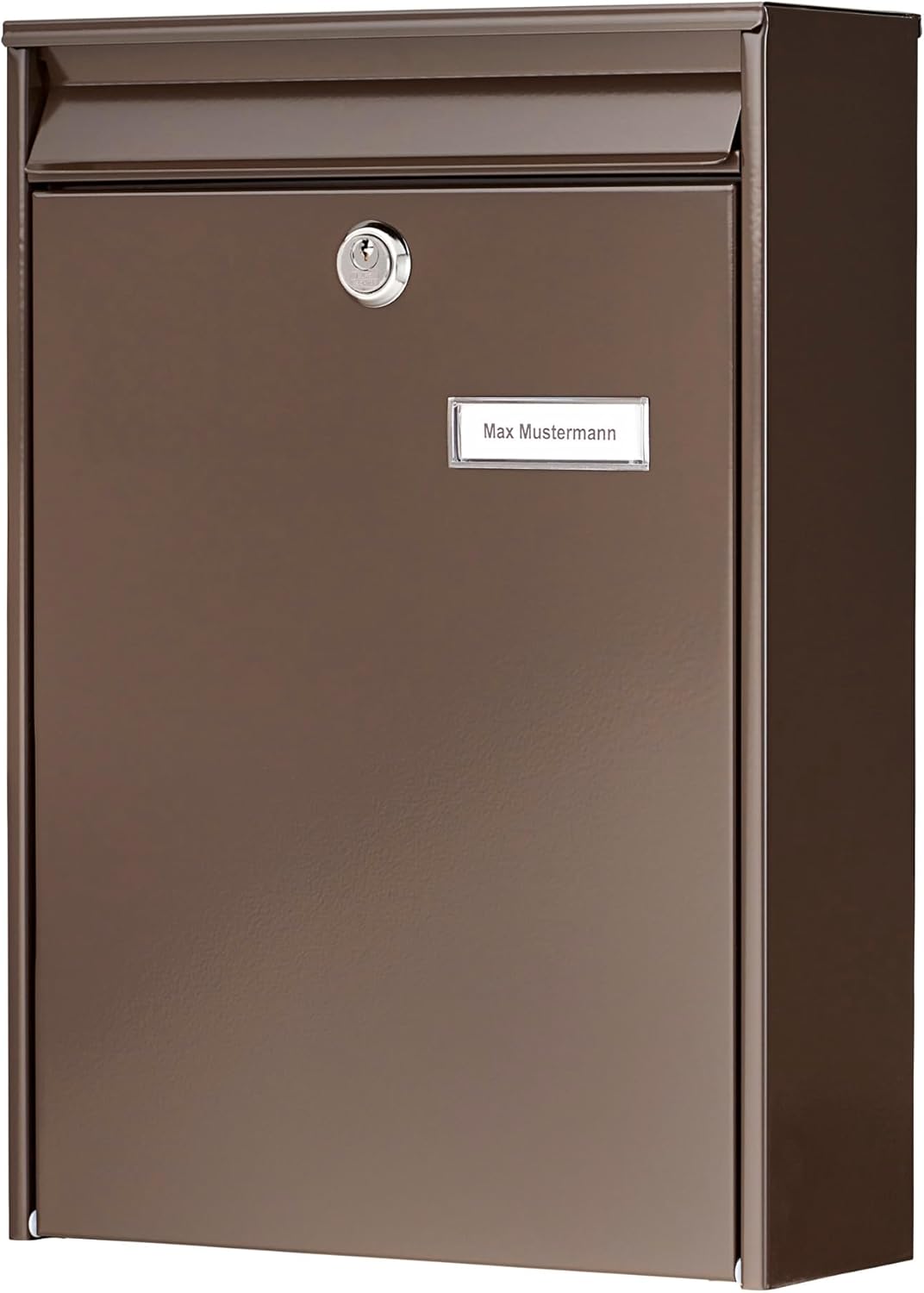 - Platzsparender, Vorgelochter Anlagenbriefkasten zur Wandmontage im Innen- und Aussenbereich, Front-Einwurf: Hochformat DIN C4 = DIN A4 mit Briefumschlag, (Farbe: Braun)