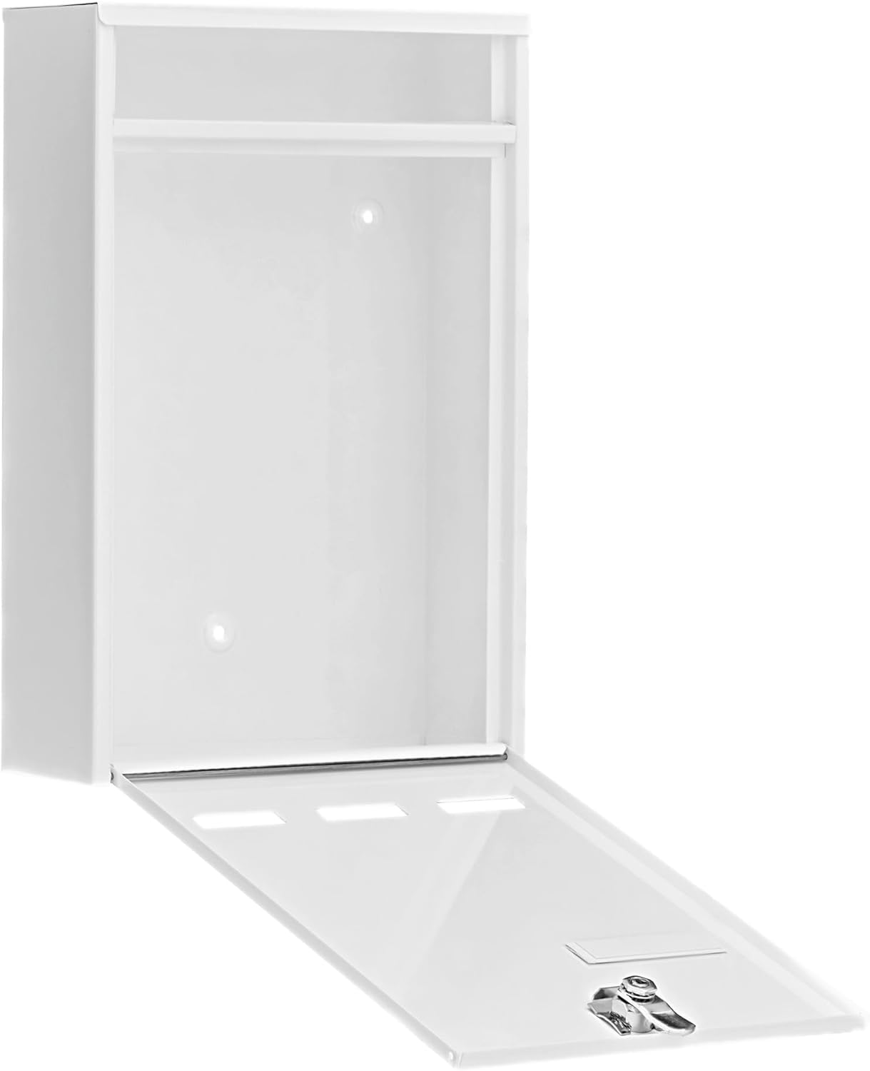- LIEFERUMFANG & ABMESSUNGEN: 1 BURG-WÄCHTER Postkasten, WISMAR 771 W, 2 Schlüssel, Abstandshalter und Befestigungsmaterial, Masse inkl. Deckel (HxBxT): 315 x 215 x 75 mm, Einwurf (BxH): 185 x 35 mm, Material: Verzinkter Stahl, Farbe: Weiss (ähnlich RAL