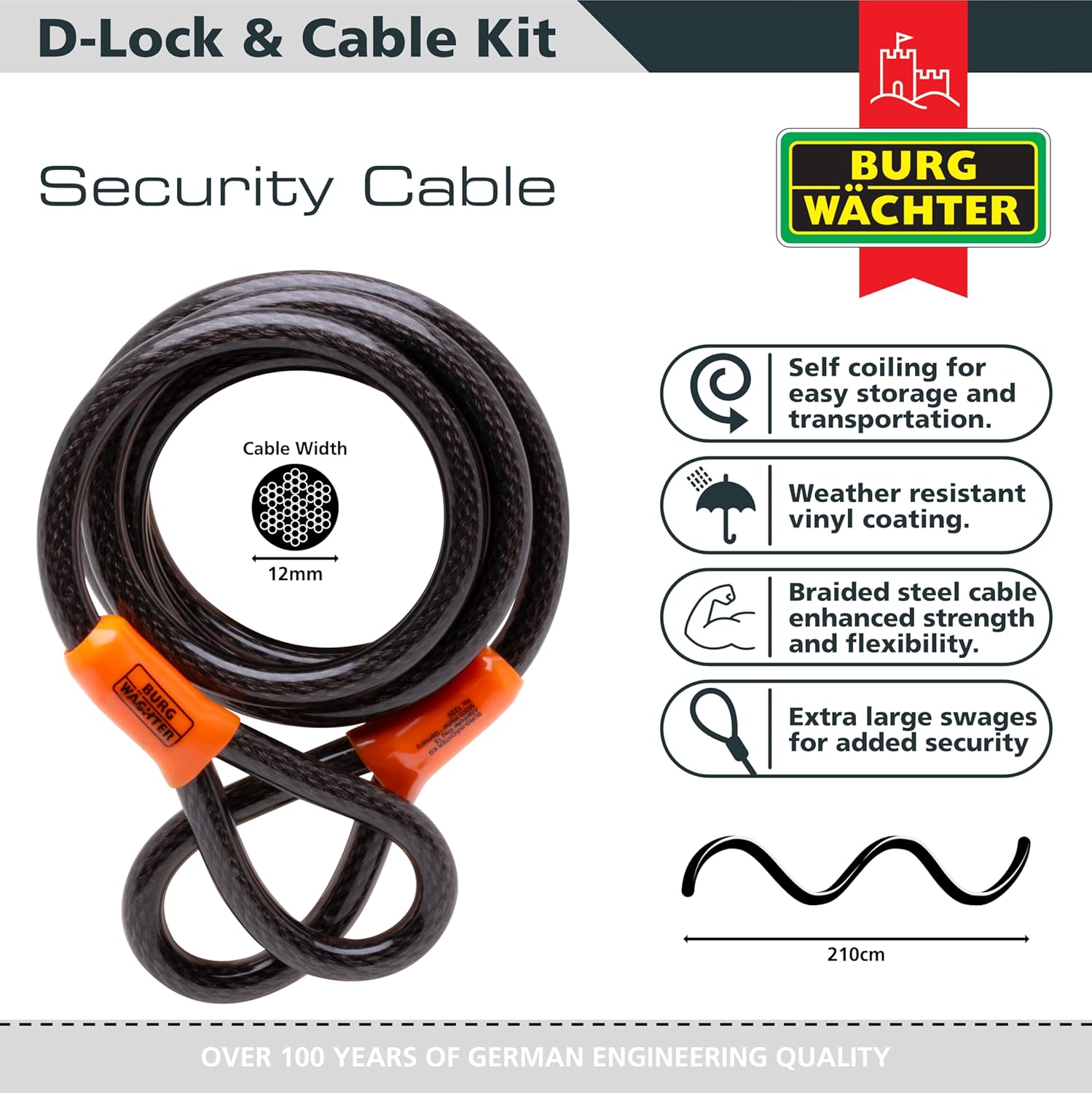 Burg Wächter 1600HB 1600 HB KIT Gold Sold Secure Fahrrad-D-Schloss, schwarz, grosses 2,1 m langes Ka