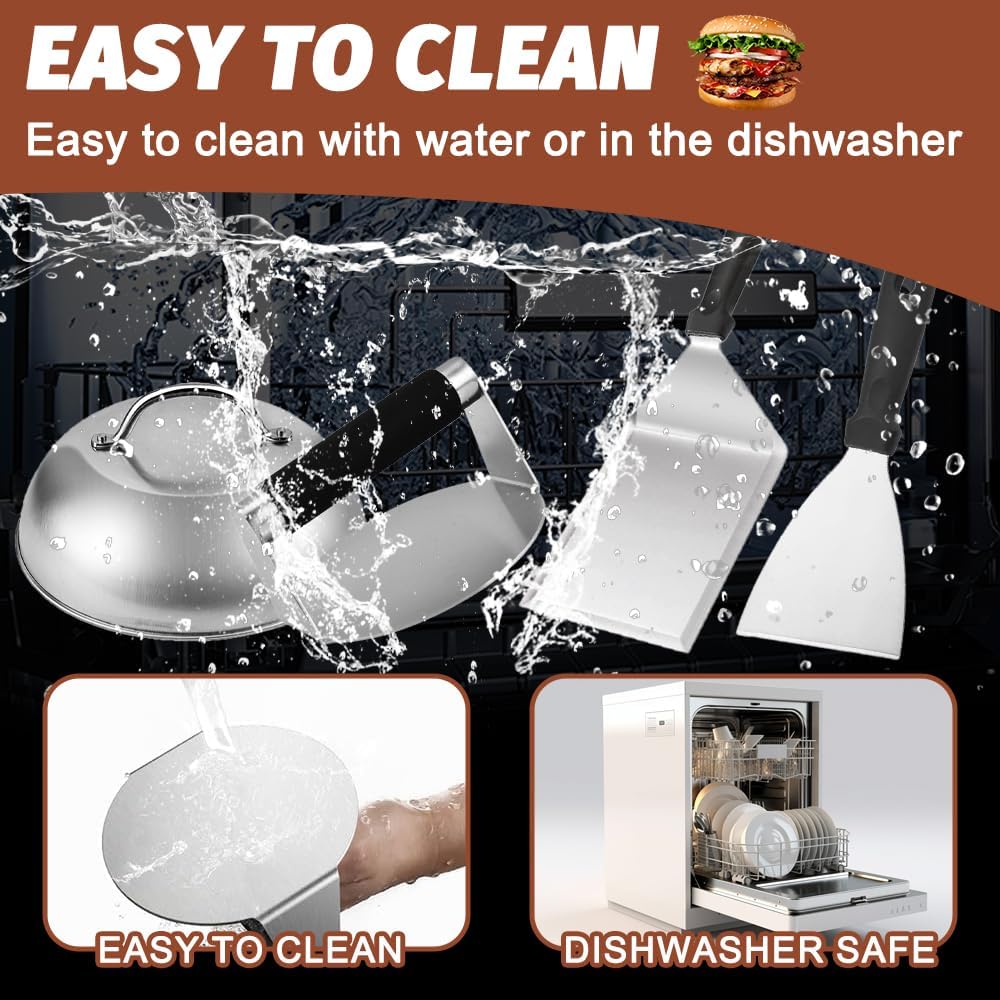 - 【Bequeme Reinigung】Dank des hochwertigen,burger smasher set lebensmittelechten Edelstahls bietetdieses Set eine hervorragende Antihaftbeschichtung und ist extrem leicht zu reinigen.Einfach mit warmem Wasser abspülen oder direkt in die Spülmaschine