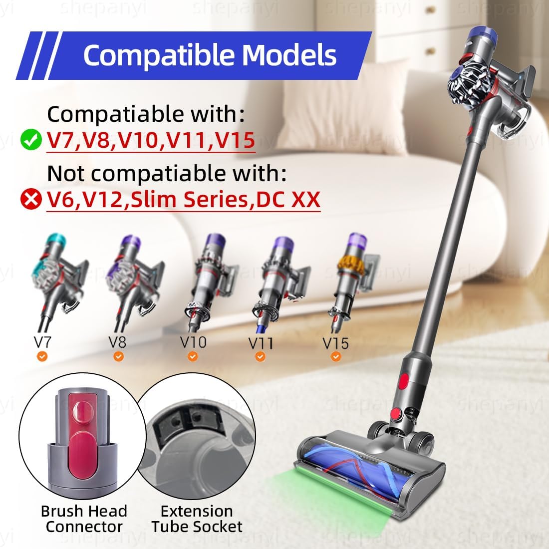- Breite Verträglichkeit: Unser Wide-Area Staubdetektions-Bürste ist mit den V7-, V8-, V10-, V11- und V15-Serie Staubsaugern kompatibel (schauen Sie sich die detaillierte Modellliste in den Produktfotos an). Aber er ist nicht mit den V6-, Slim-Serie oder