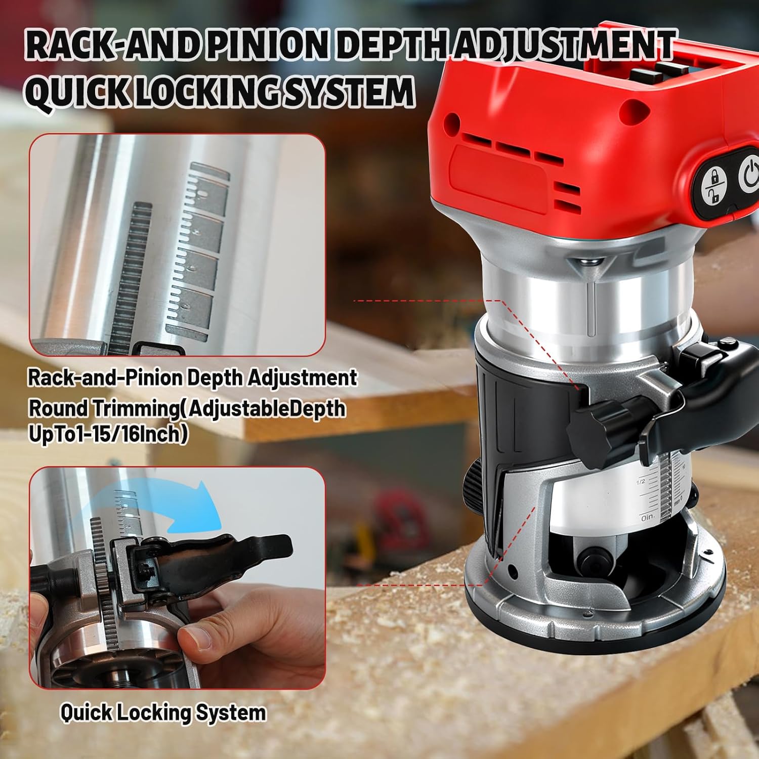 - 【Verbesserte Basis aus Aluminiumlegierung】Im Gegensatz zu vielen Holzfräsen mit Kunststoffsockeln verfügt der Akku-Router über einen hochwertigen ABS-Körper und eine Basis aus Aluminiumlegierung für überlegene Haltbarkeit und Stabilität. Diese