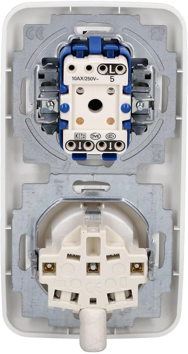 Variante: 1x Steckdose, 1x Serienschalter, 1x 2f Rahmen, 1x Wippe-serie