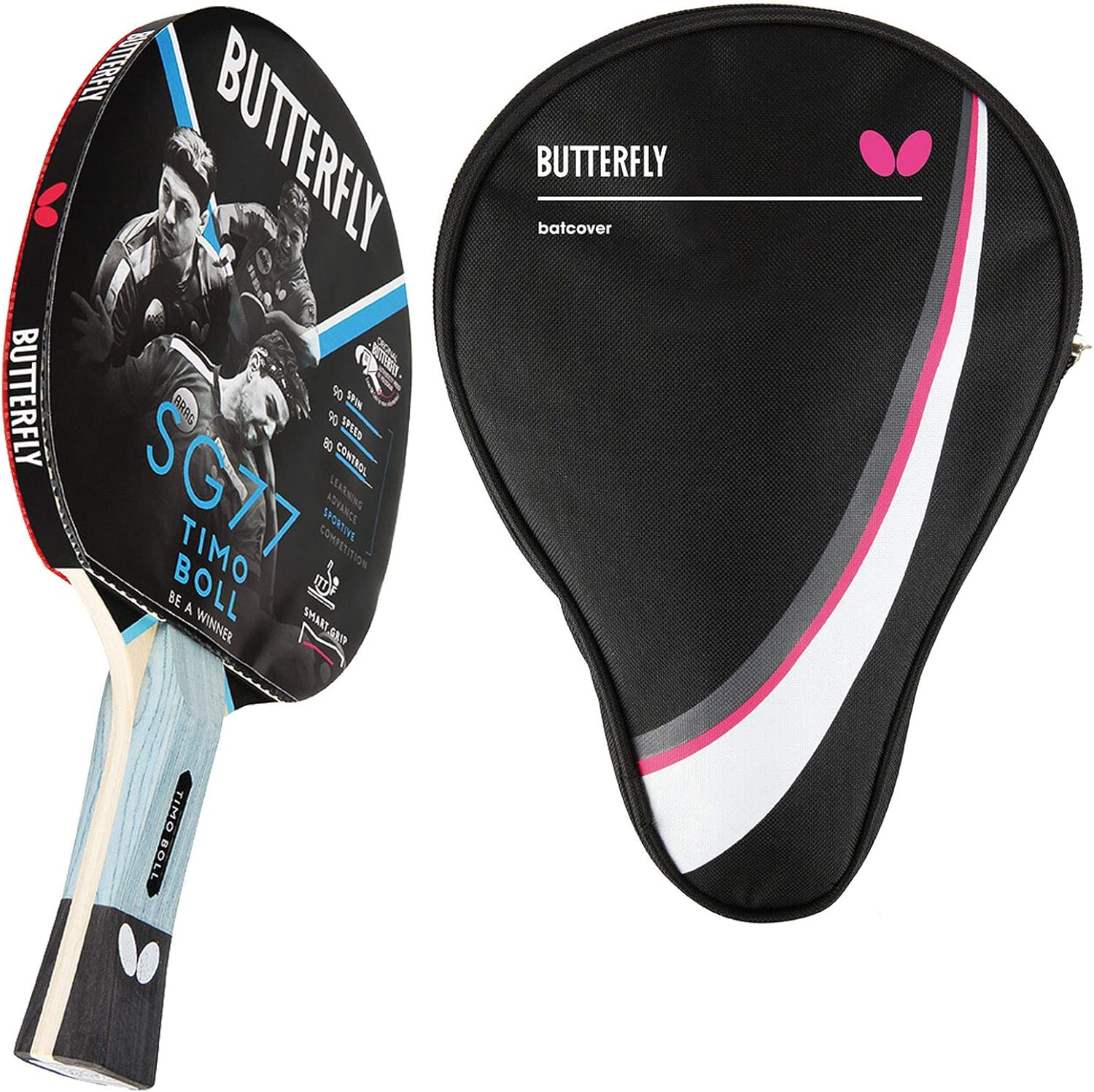 - ▶ 𝗛𝗢𝗖𝗛𝗪𝗘𝗥𝗧𝗜𝗚𝗘𝗥 𝗦𝗖𝗛𝗟Ä𝗚𝗘𝗥: Sehr guter Trainingsschläger Butterfly Timo Boll SG77 mit zweifarbigem Wing Design und Linse. Pan Asia Belag mit Schwammstärke 1,8 mm für routinierte und taktisch