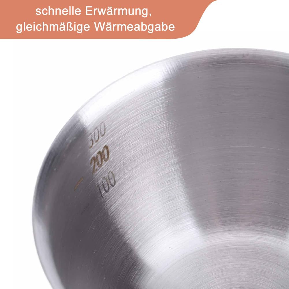 - Edelstahlmaterial: Klassisches Aussehen, professionelle Leistung, schnelle Erwörmung, gleichmööige Wörmeableitung. Dieser Butterwörmertopf besteht aus Edelstahlmaterial, das sich nicht leicht verformen lösst, lange verwendet werden kann und eine