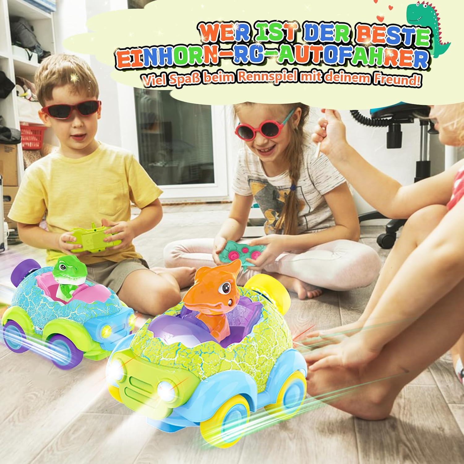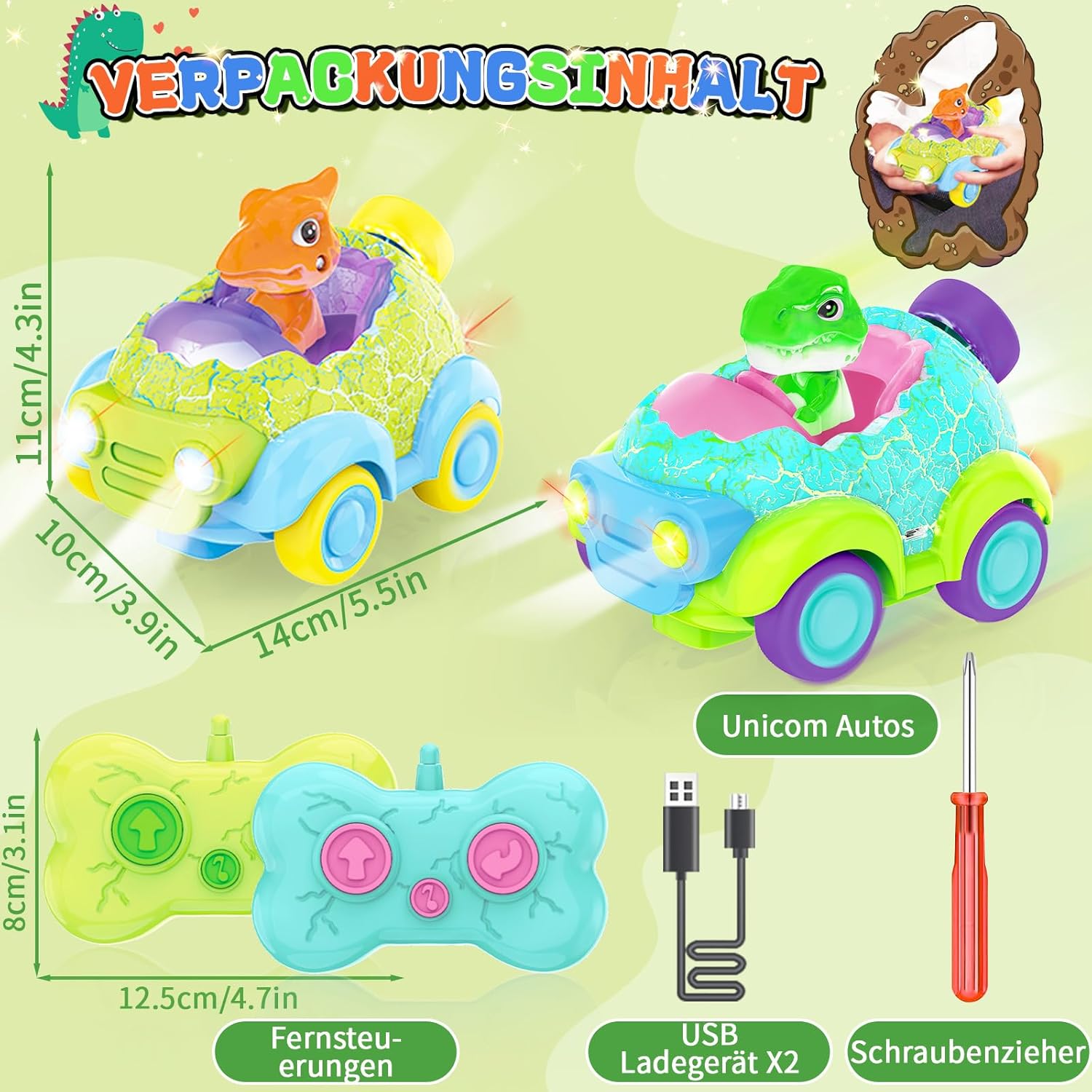 BuzzoXere Set Ferngesteuertes Auto Kinder, 2pcs Ferngesteuertes Dinosaurier Spielzeug für Kinder, Di