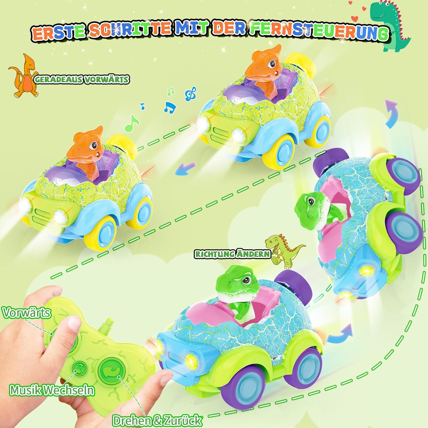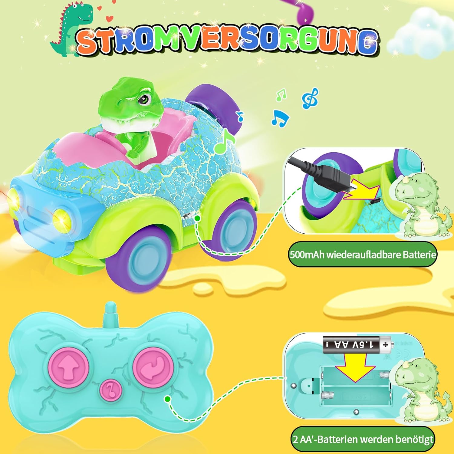 • 【Dinosaurier Thema Design 】 Diese fernbedienung auto kinder in das aussehen der dinosaurier thema design, das gesamte cartoon stil, körper nachahmung dinosaurier eier, dinosaurier kopf abnehmbar. niedliche und lebendige dinosaurier thema design,
