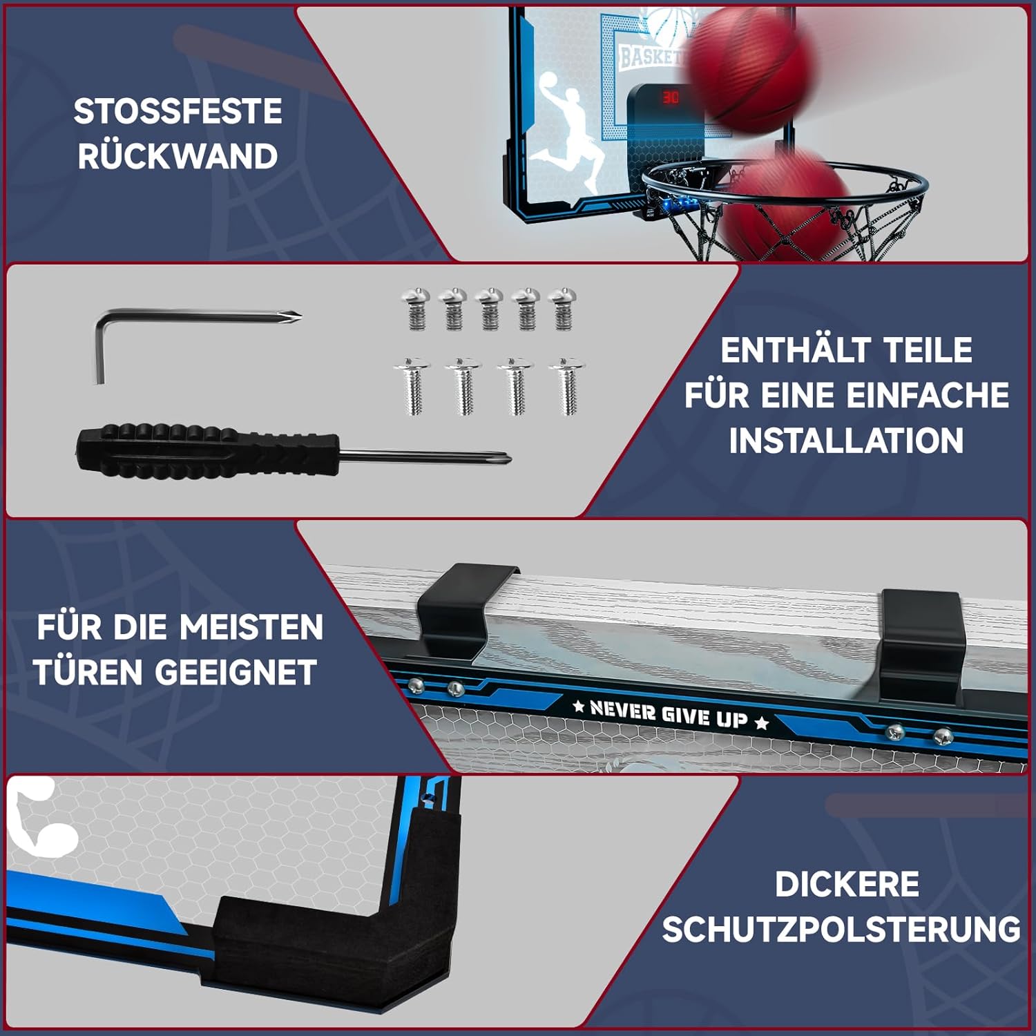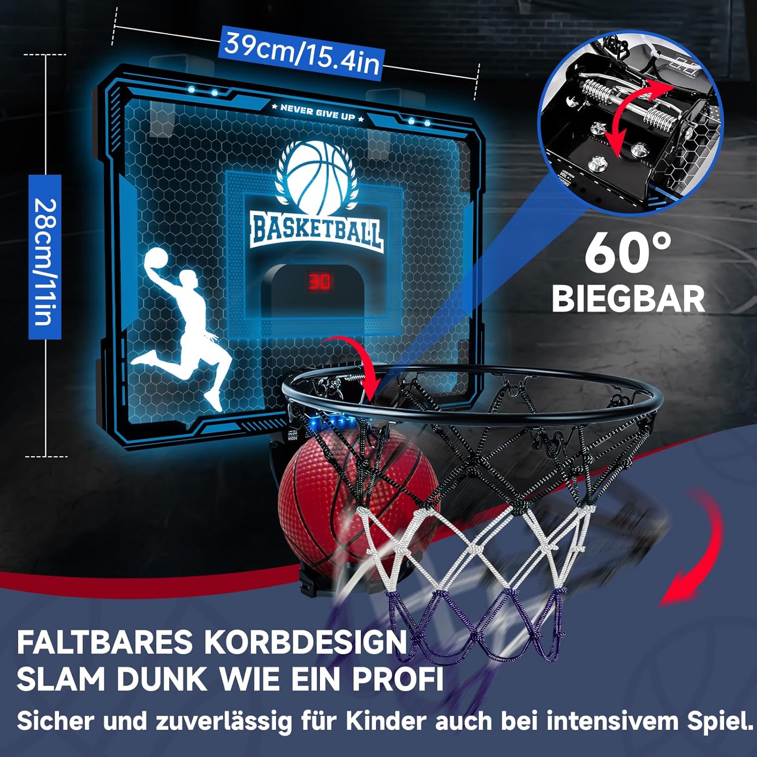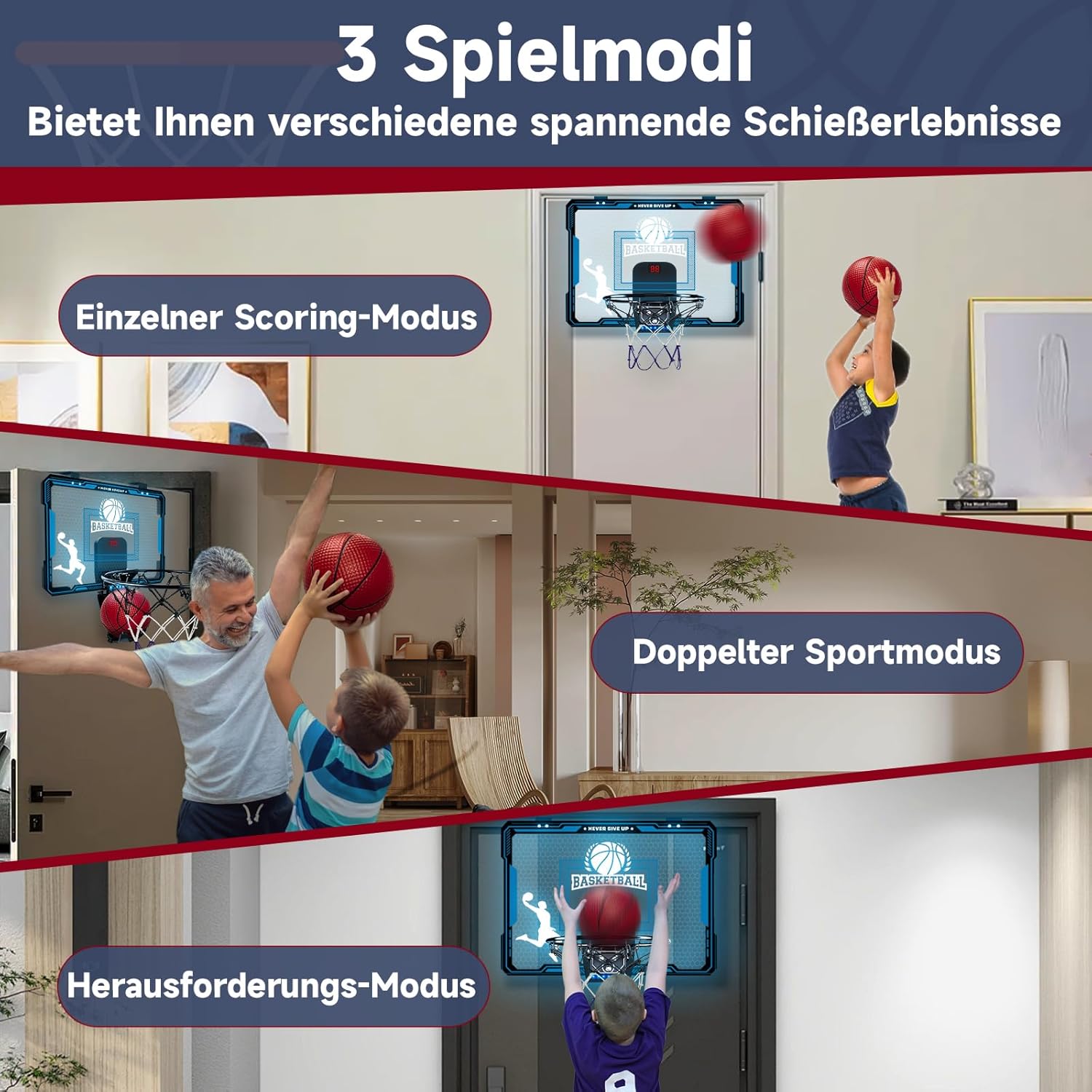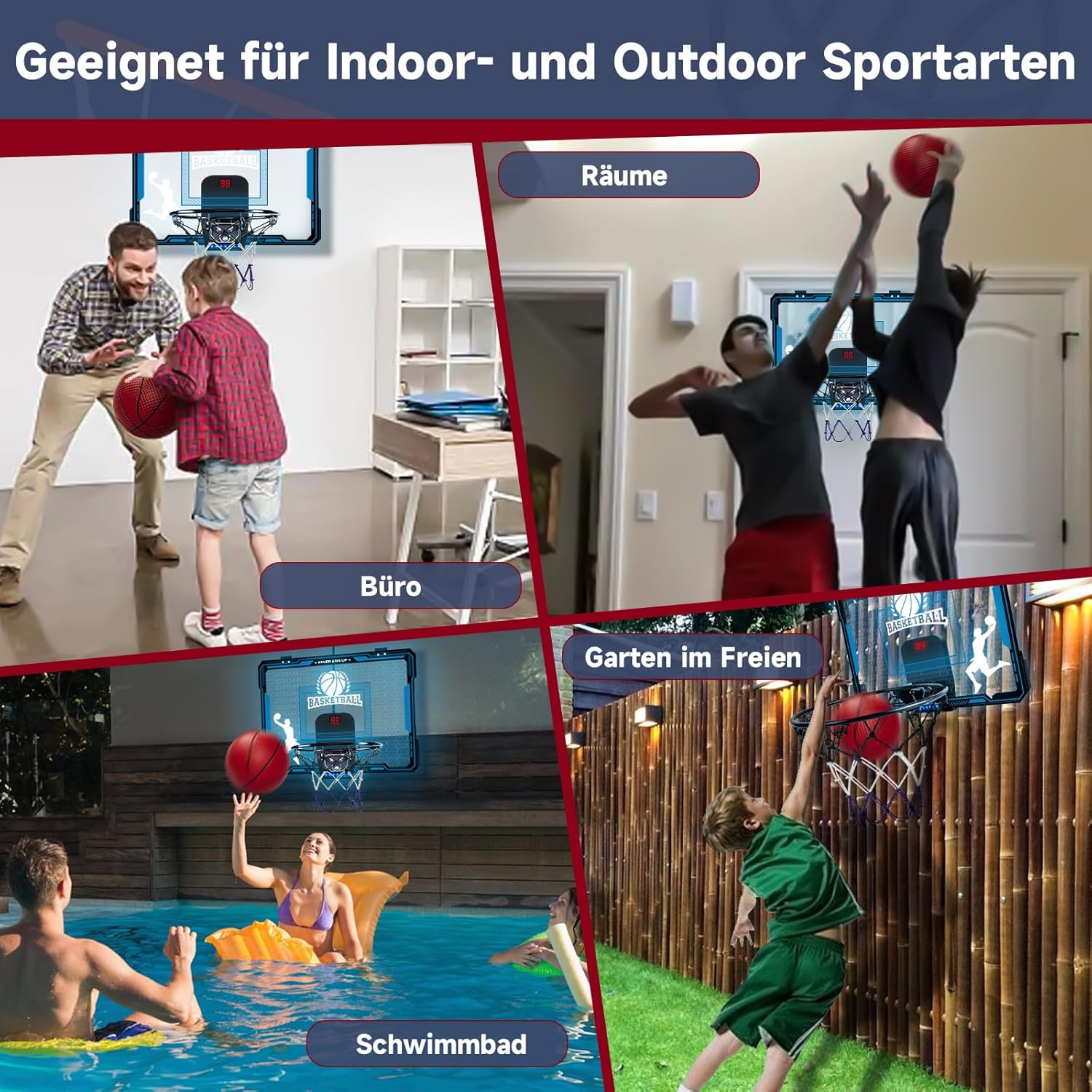 - 【Upgrade 3 Game Modes & Remote Conrtol】-Dieser mini basketballkorb wird mit einer Fernbedienung geliefert, die verschiedene Modi, Farbänderungen und Lautstärkeanpassungen steuern kann, sodass Sie die elektronische Anzeigetafel jederzeit und