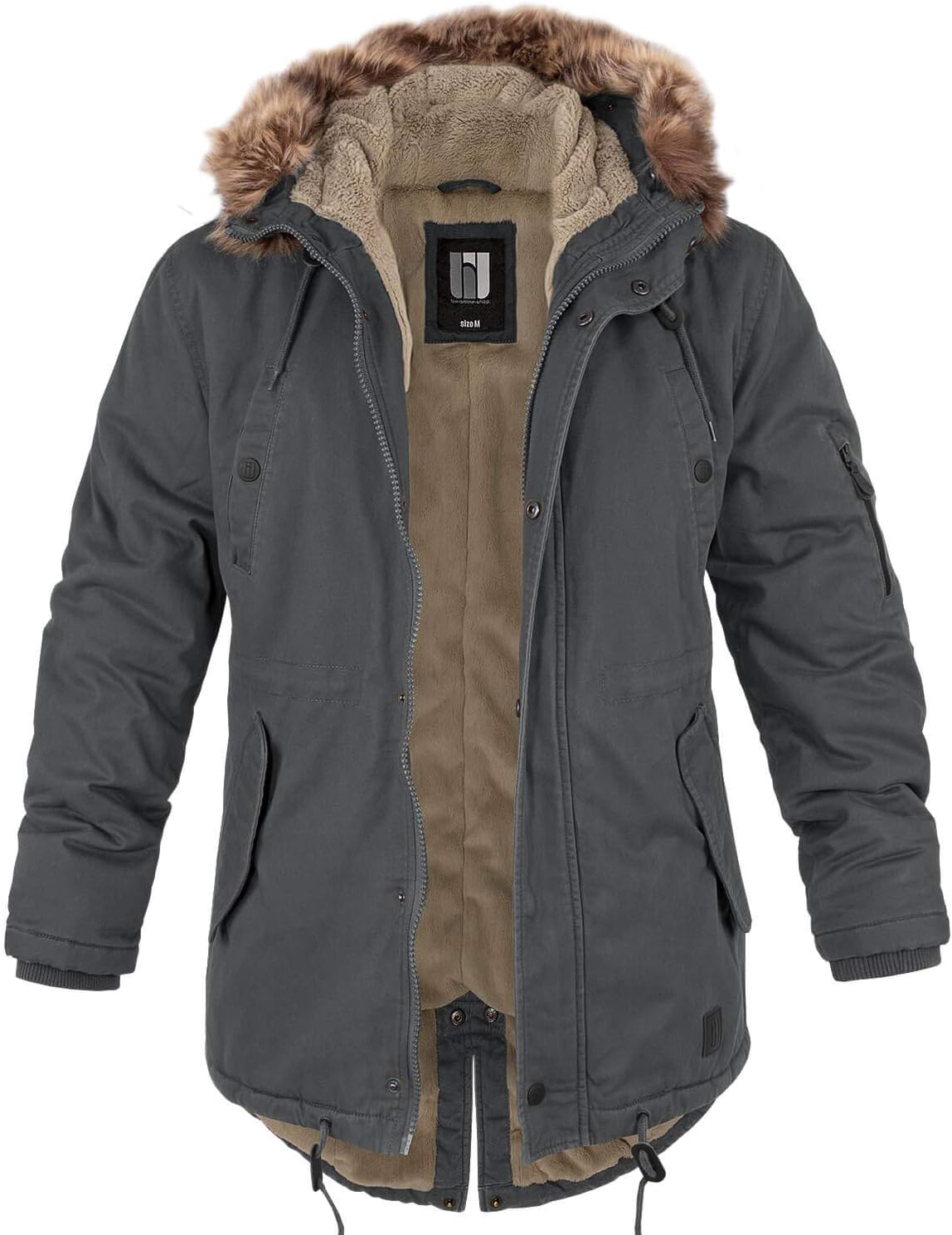 - DETAILS & HIGHLIGHTS robuster, hochschliessender, kuschelig gefütterter Parka mit Tunnelzug-Kapuze und abnehmbarem Kunstfell, Tunnelzüge an Taille und Bund, Frontreissverschluss mit storm flap, zwei Brust- und zwei Hüfttaschen mit Patte, sowie eine