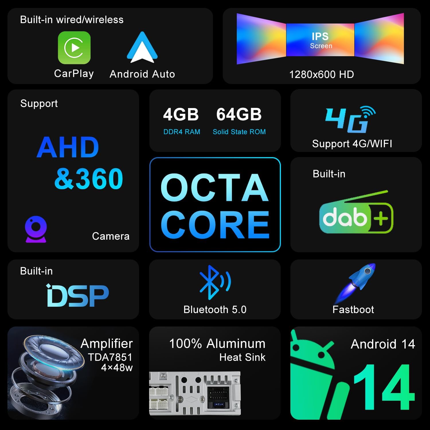 - 【EINGEBAUTES DAB - SCHNELLES BOOTEN - 360-KAMERA】 Der hochempfindliche DAB+-Tuner ist integriert. Sie können eine bessere Klangqualität und einen leistungsstärkeren digitalen Audioübertragungskanal geniessen. Greifen Sie in weniger als 2 Sekunden
