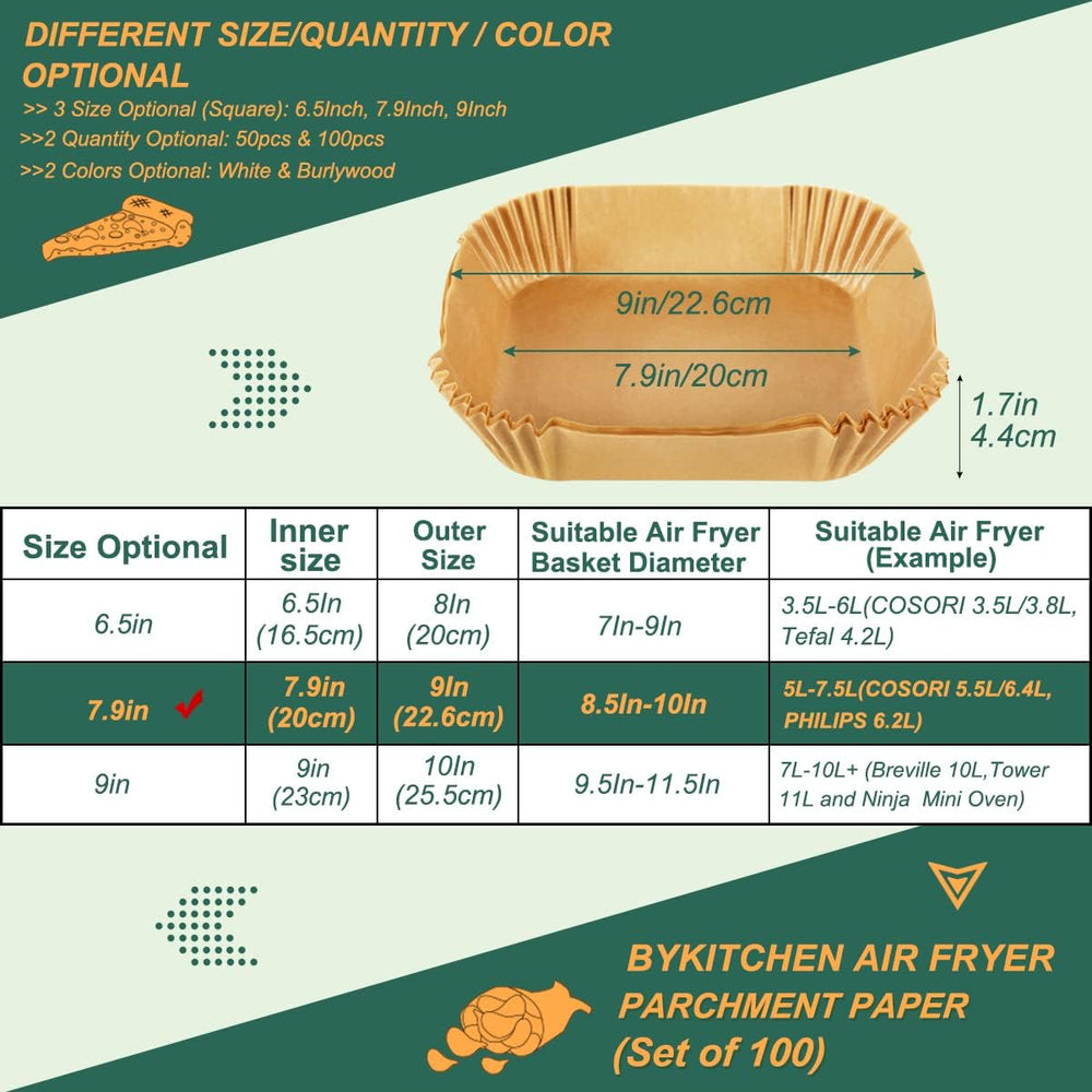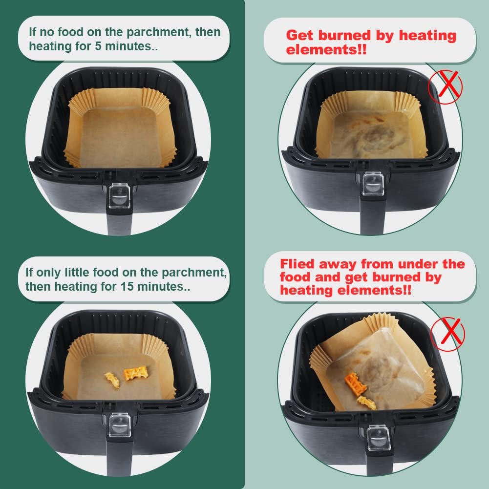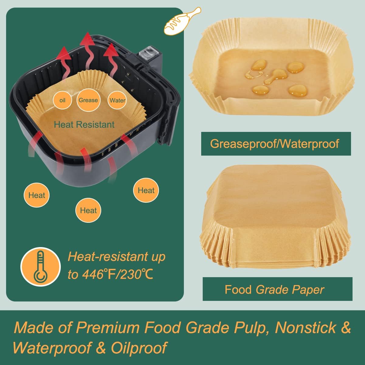 - Premium Heissluftfritteuse Papier: aus 100 % lebensmittelechtem Zellstoff mit lebensmittelechter Antihaftbeschichtung, gesund, fettdicht, wasserdicht, nicht saugfähig, 100 % sicher für den täglichen Gebrauch
