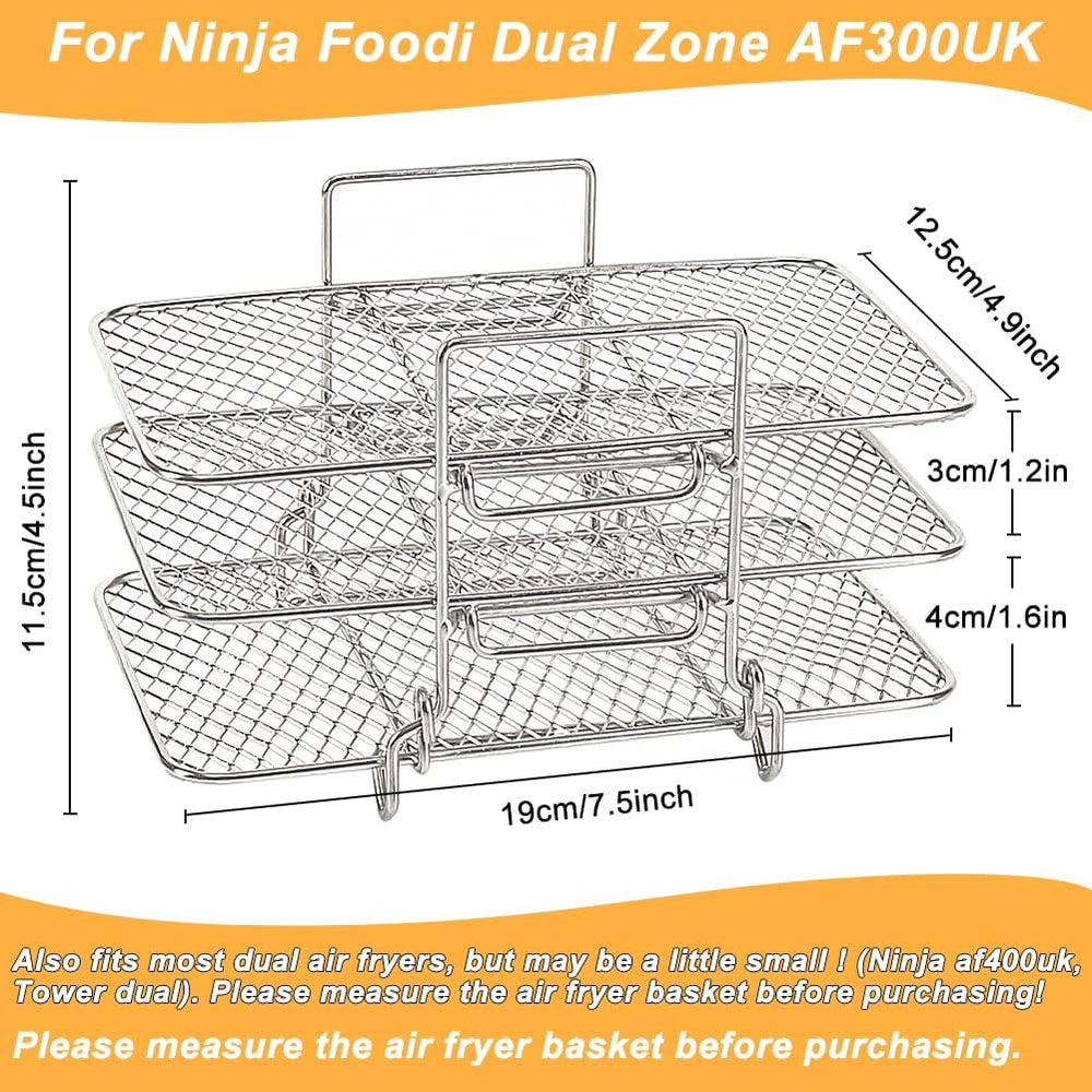 - 【Luftfritiergestell für Ninja Dual Luftfritiergerät】: Grösse: L*B*H 19cm*12.5cm*11.5cm Speziell für Ninja Foodi AF300UK duale Luftfritteuse entworfen, auch geeignet für AF400UK, Salter EK4548 und andere Dual Zone Luftfritteuse