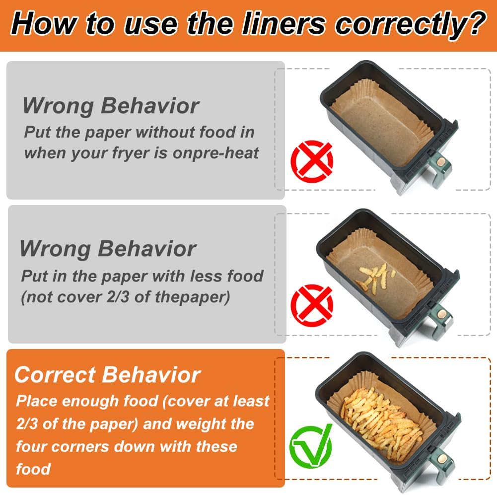 - HITZEBESTÄNDIG & EINFACH ZU VERWENDEN: Hitzebeständig bis zu 232 ℃, mikrowellen- und ofenfest. Diese antihaftbeschichteten Einweg-Luftfritteuse-Blätter sind alle mit einer Schalenform und exakter Grösse, kein Schneiden oder Falten erforderlich.