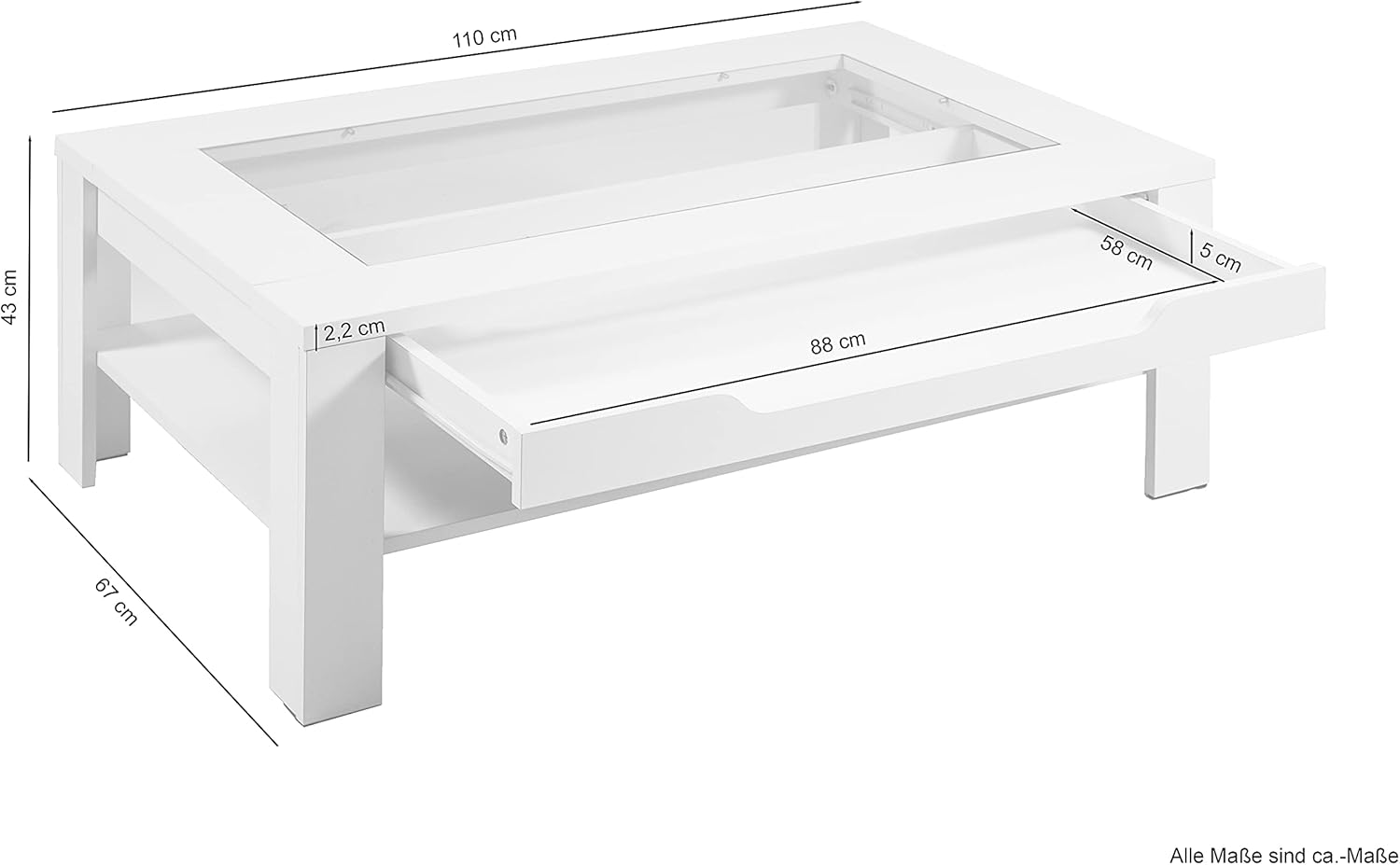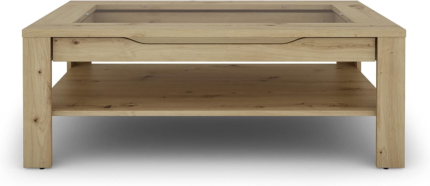 - Der Sofatisch mit Klarglas-Einlage bietet durch seine Einteilung viel Stauraum