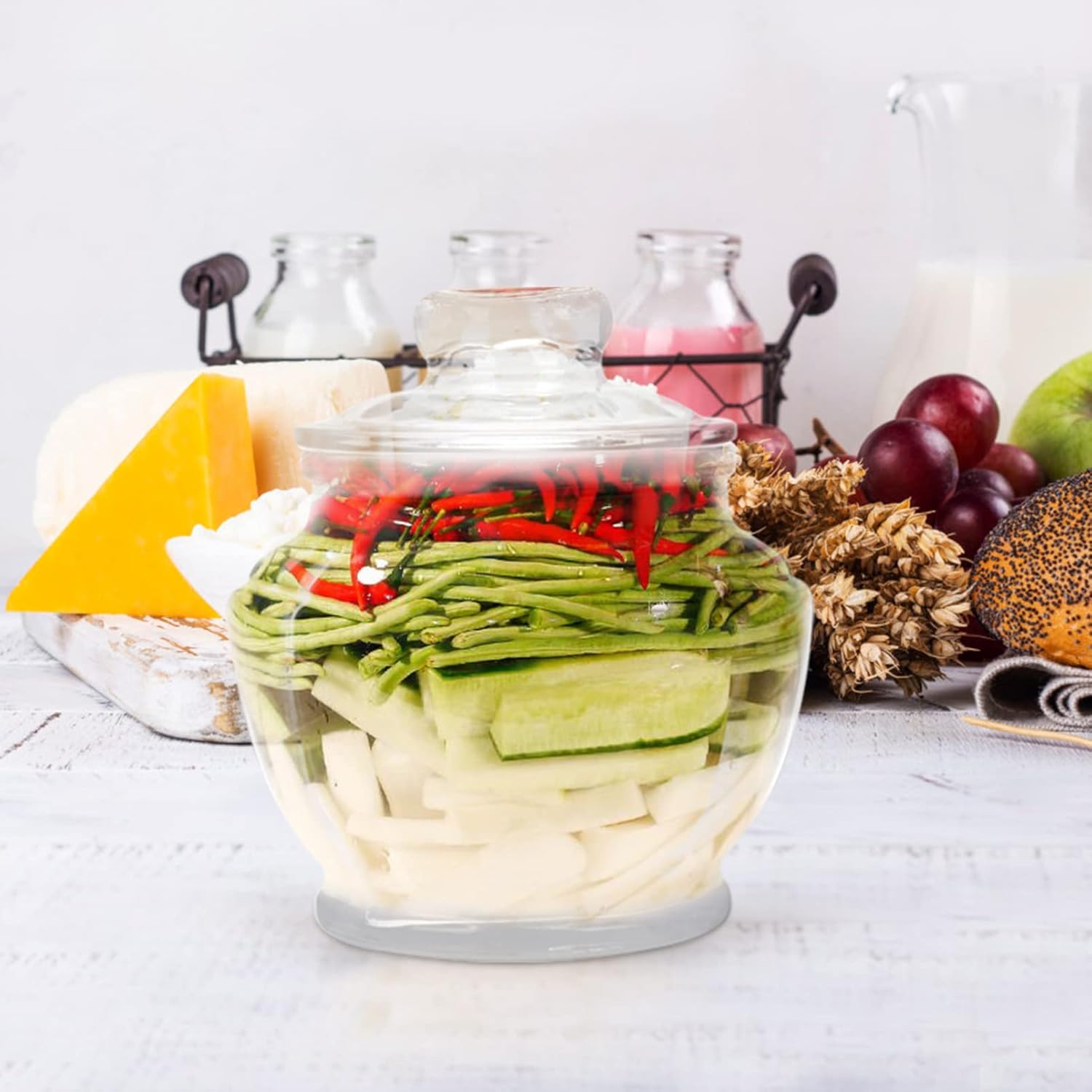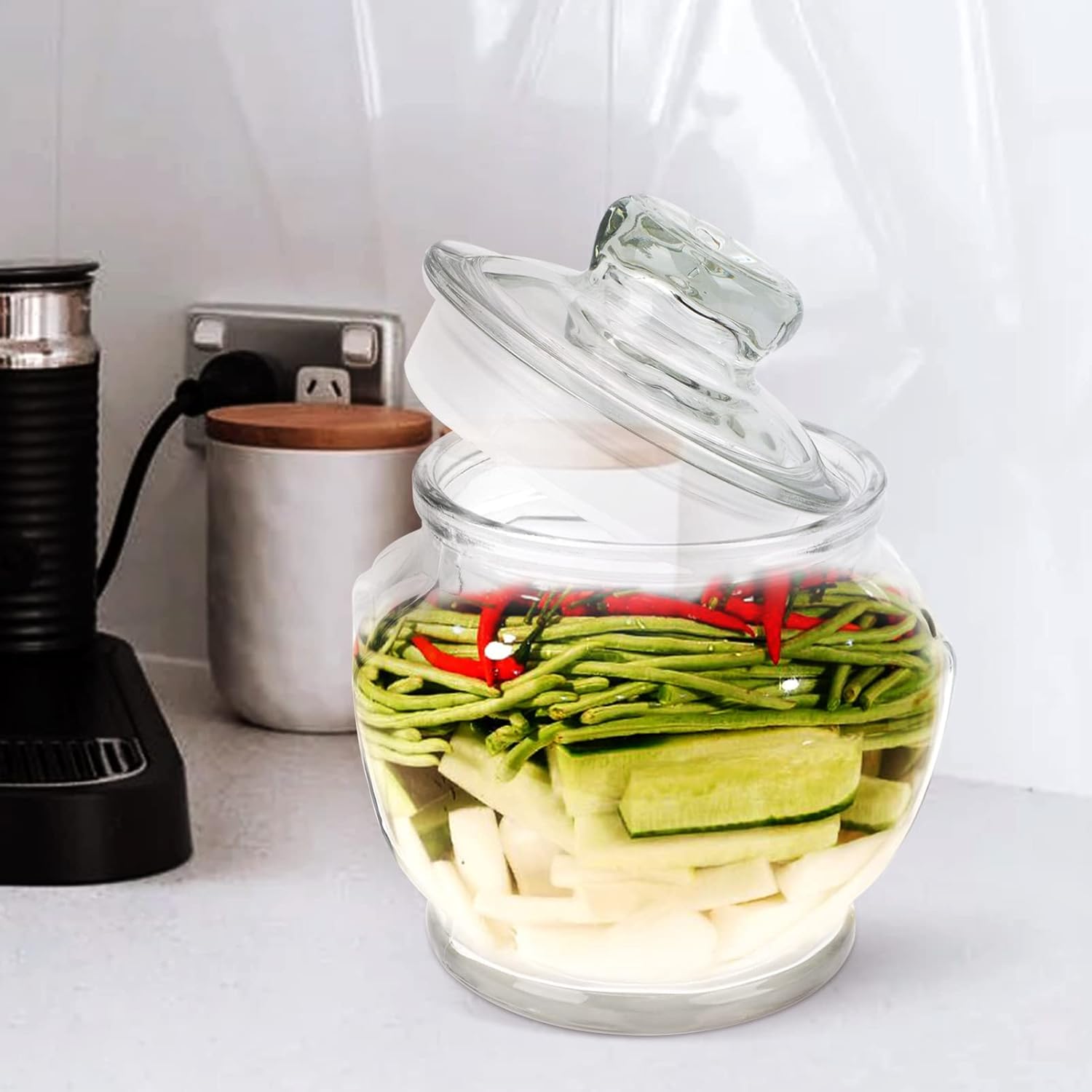 - Der versiegelte Lagerungstopf ein schöner Helfer, um Gurke und zu speichern. Es sehr nützlich in der Küche.