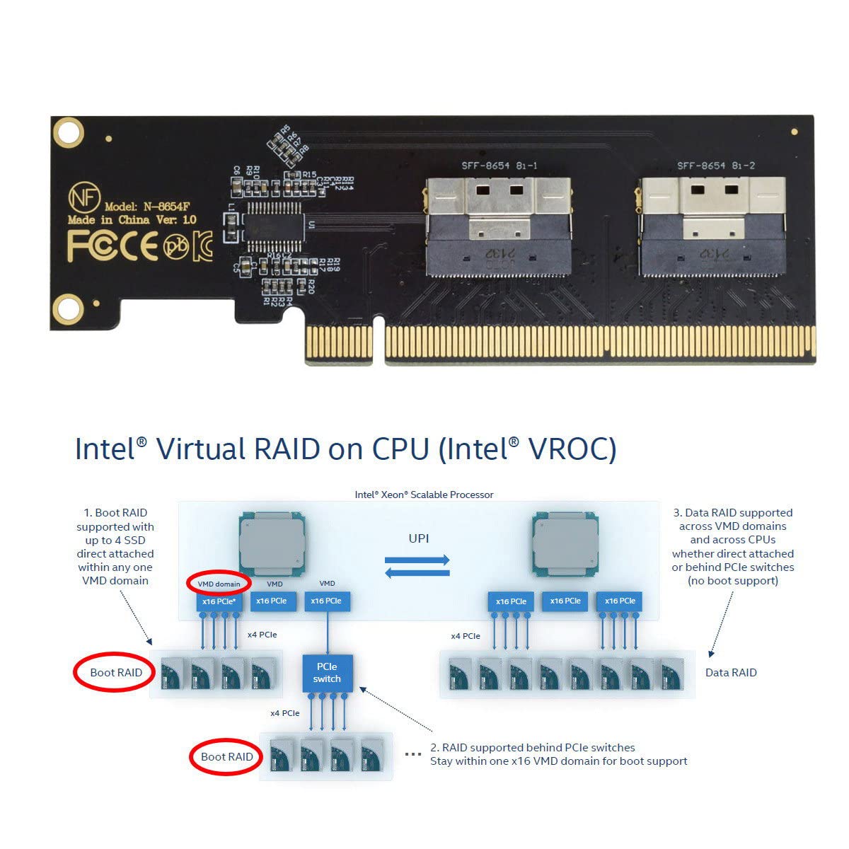 - 3. Dual Slimline SFF-8654 8X Design, stabile Installation, kann 4 PCIE-Disks bei voller Geschwindigkeit gleichzeitig betreiben.