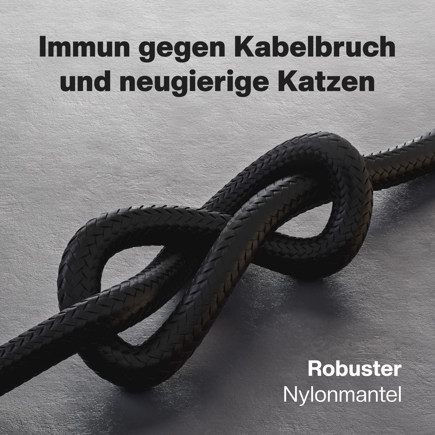 - Robust & Stabil: Mehrfach verstärkt geflochtenes Nylon-Kabel in CABLETEX-Qualität für über 10.000 Biegungen. Gehäuse aus Aluminiumlegierung für Langlebigkeit und Haltbarkeit. Kabelbruch hat keine Chance. Mit praktischem Klettverschluss.